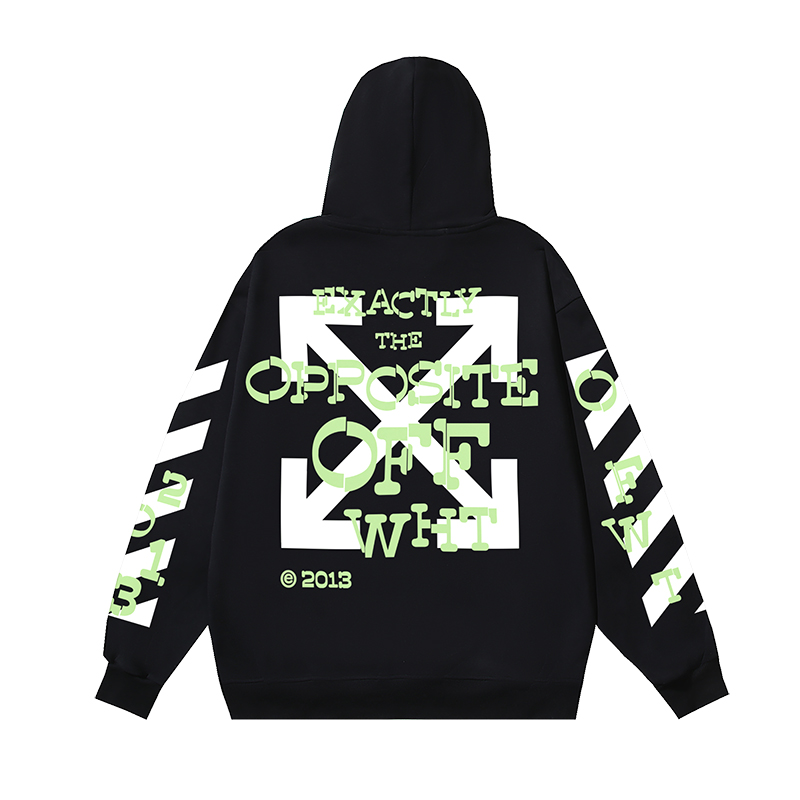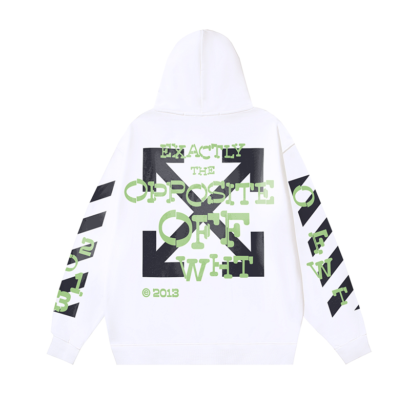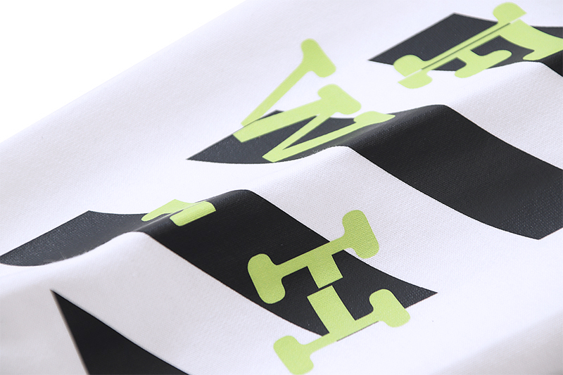 オフホワイト(Off-White)の定番アローパーカー、スーパーコピーのホワイトは清潔感あふれるベースに緑と黒のコントラストが効いた一着です。胸中央の緑ロゴがさりげなく主張し、両袖に走る太い斜めストライプと矢印マークが動きのあるアクセントに。フードのドローストリングやカンガルーポケットの内側にも細かいプリントが隠れ、着るたびに発見がある遊び心が魅力です。