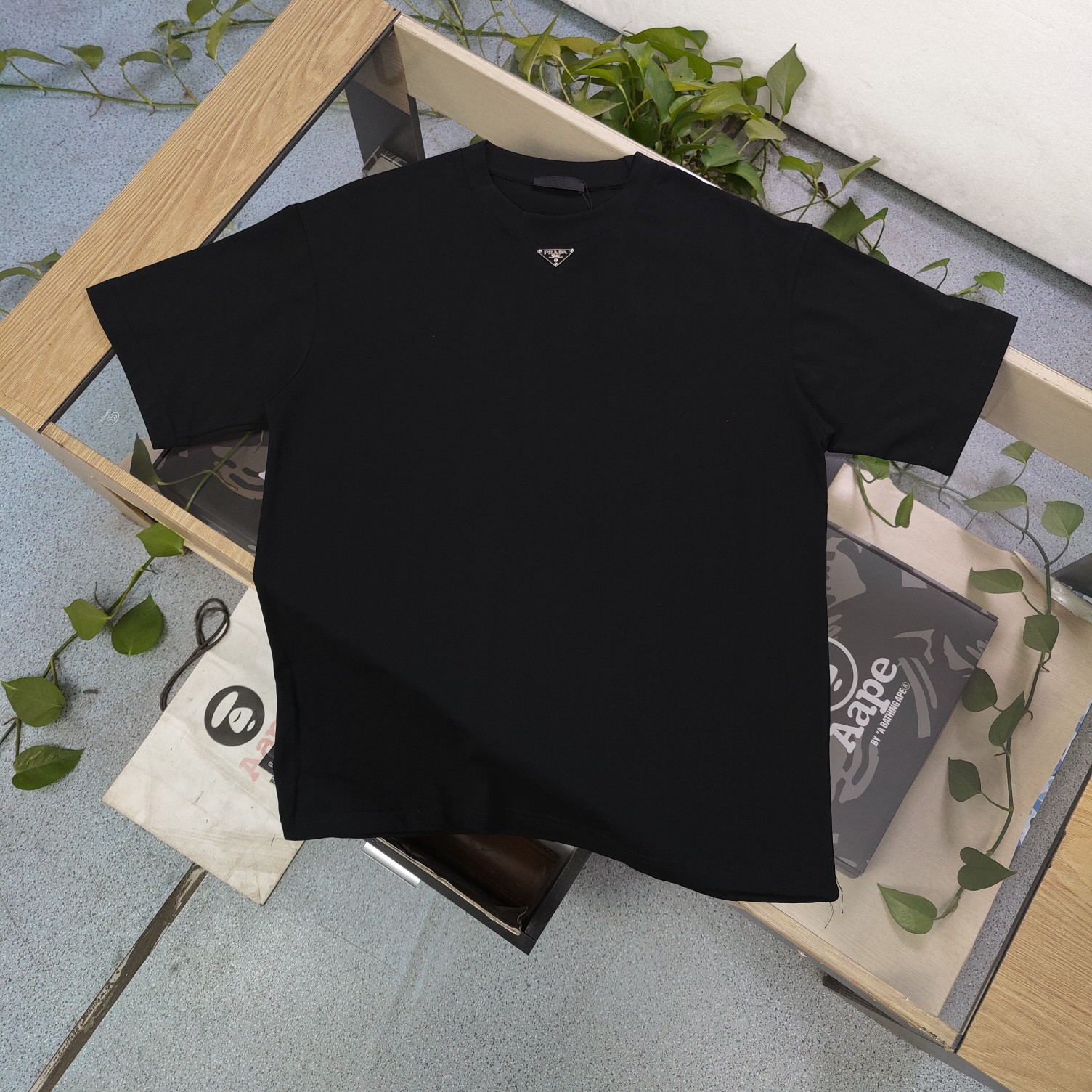 PRADA (プラ ダ)メタルマーク100%コットン 快適柔らかい偽物半袖Tシャツ激安通販