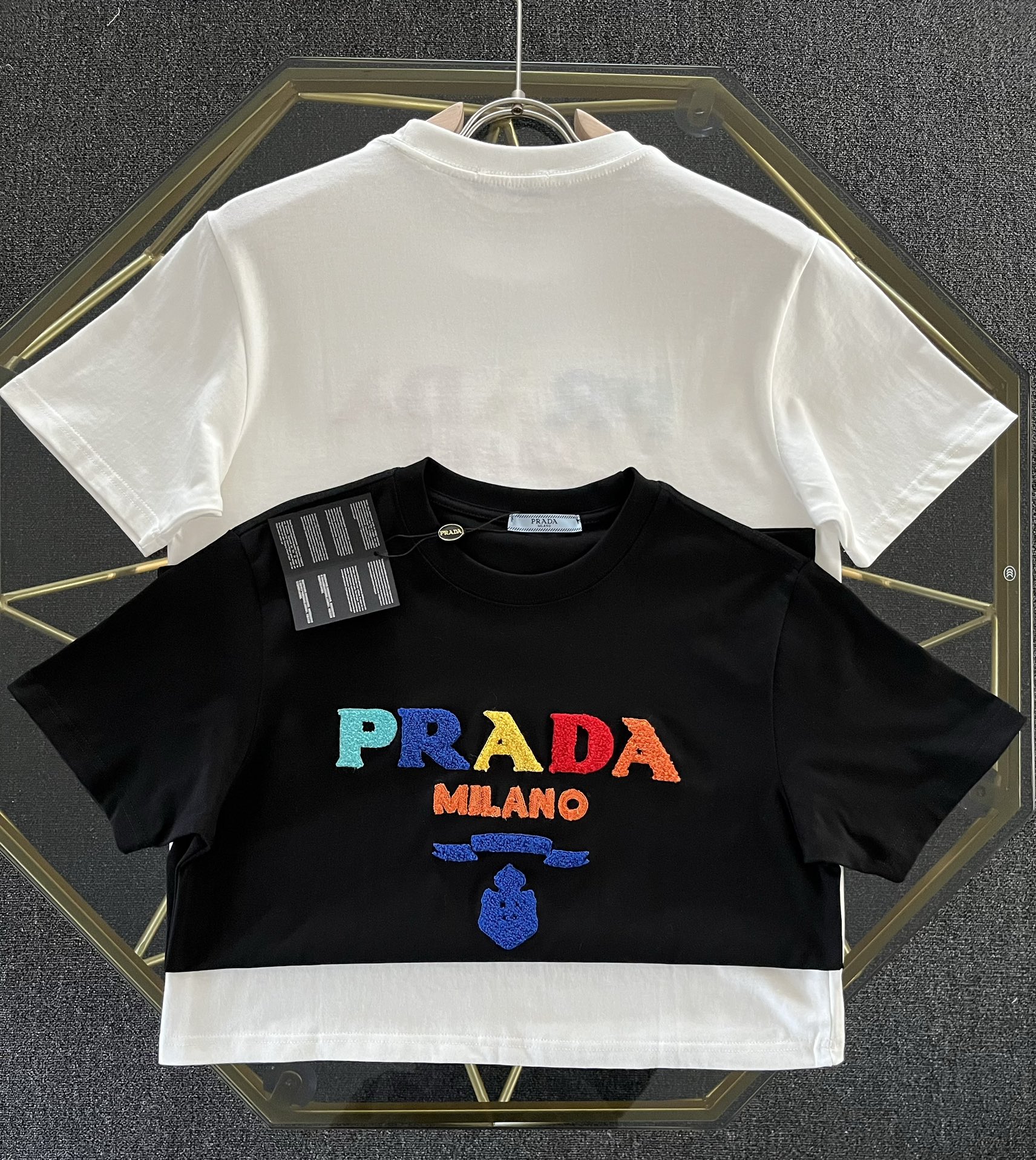 PRADA (プラ ダ)2024春夏新作100%コットン刺繍半袖Tシャツコピー