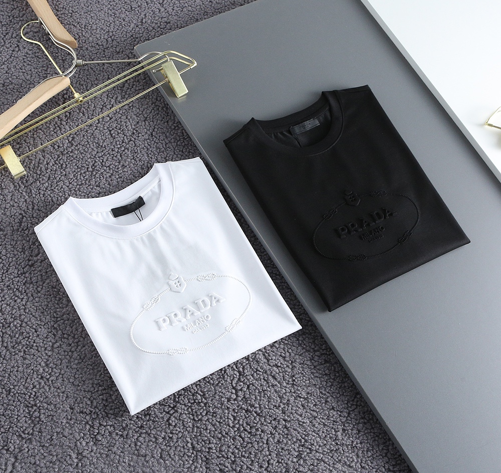 PRADA(プラダ)2024春夏新作高品質のシルケットコットンメンズTシャツn級品