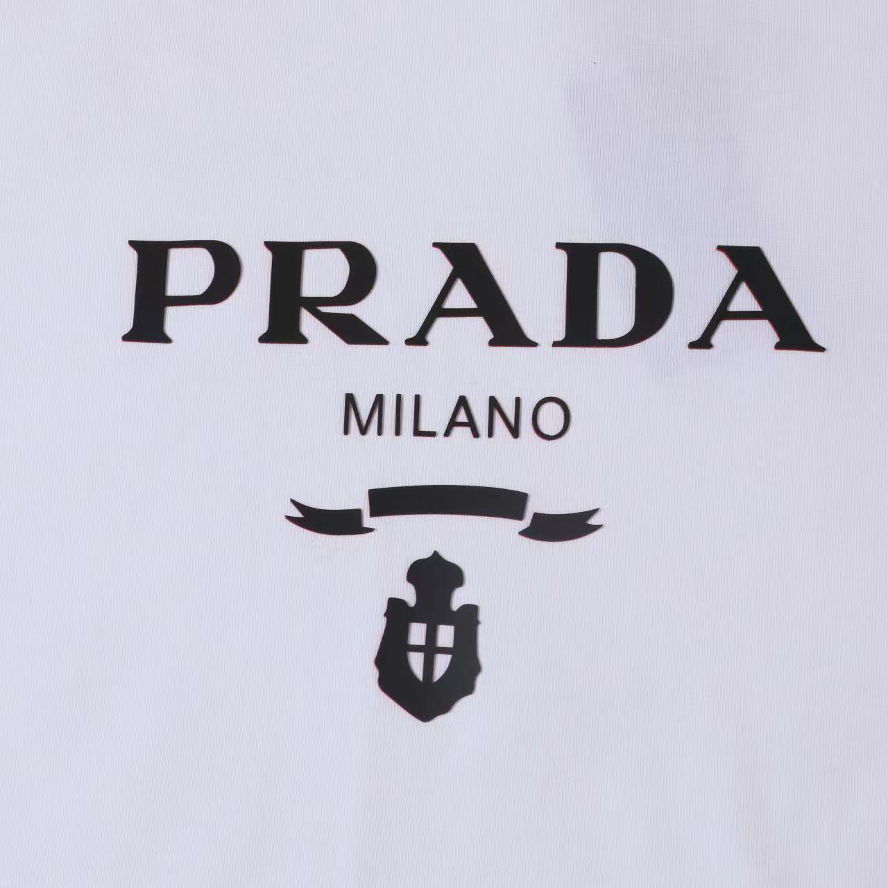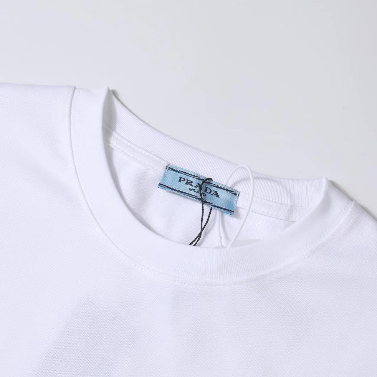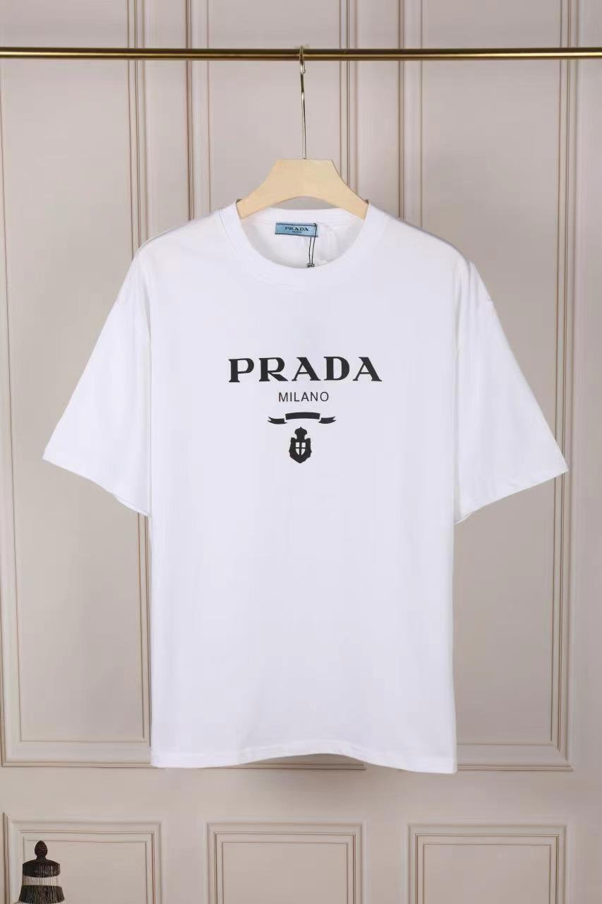 PRADA(プラダ)2024新作アルファベットプリント100%コットンラウンドネック半袖コピー