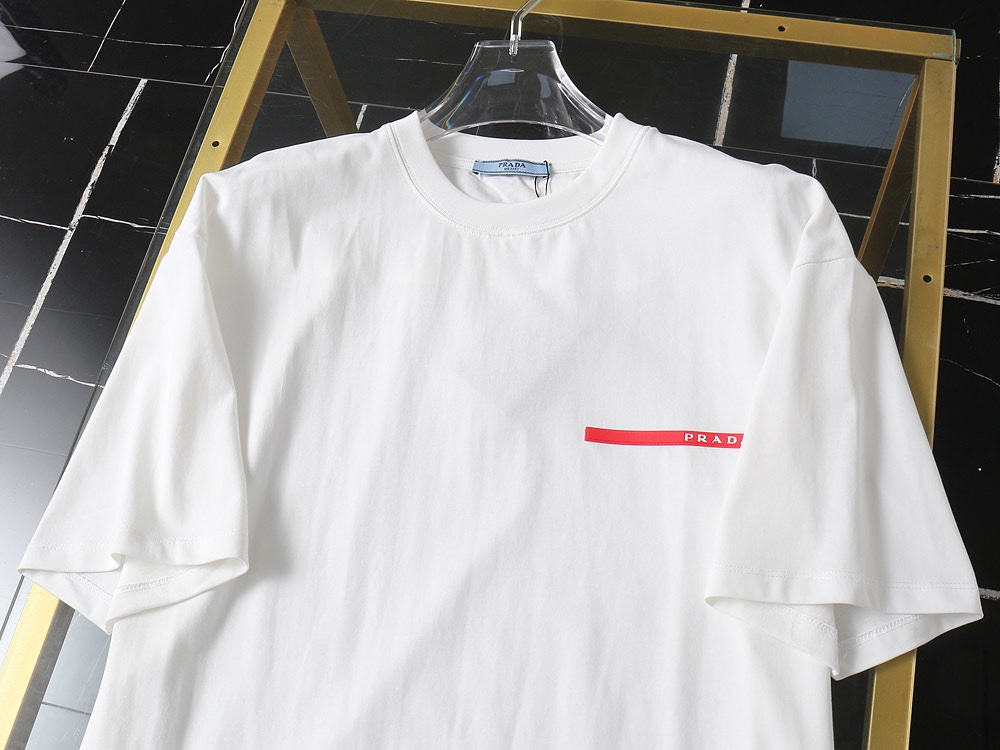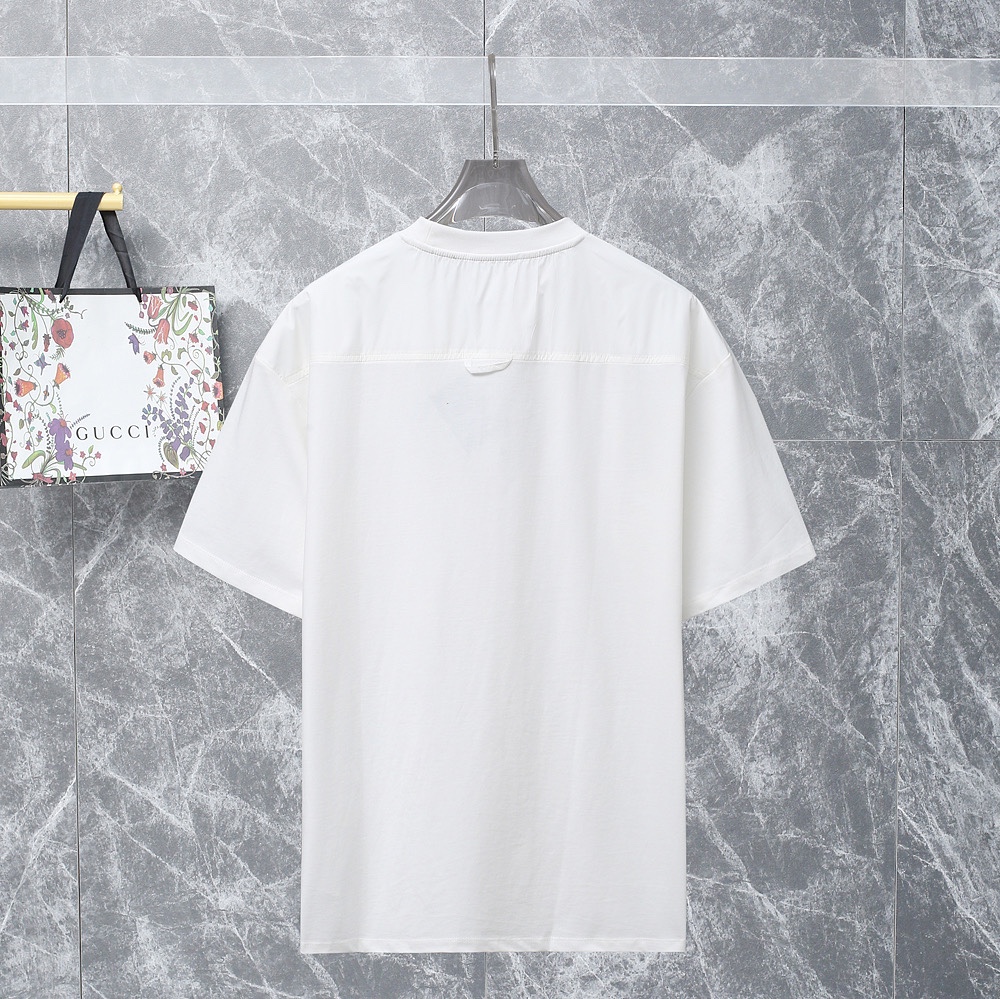PRADA(プラダ )n級品高密度のコットン生地ラウンドネック半袖Tシャツ男女兼用