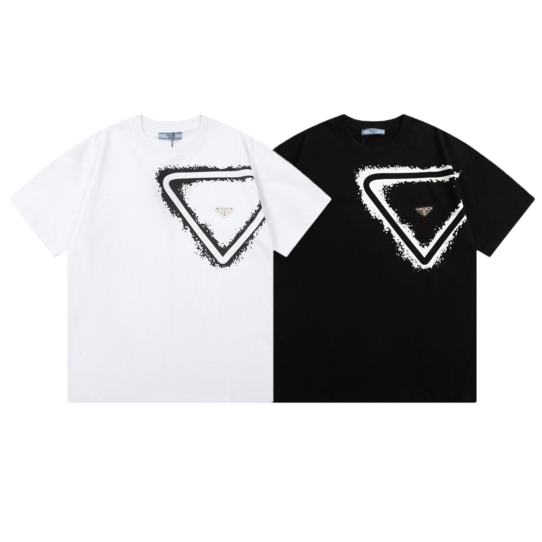 PRADA(プラダ)2024春新作n級品生地三角形徽章アルファベットlogo半袖Tシャツをカスタマイズします