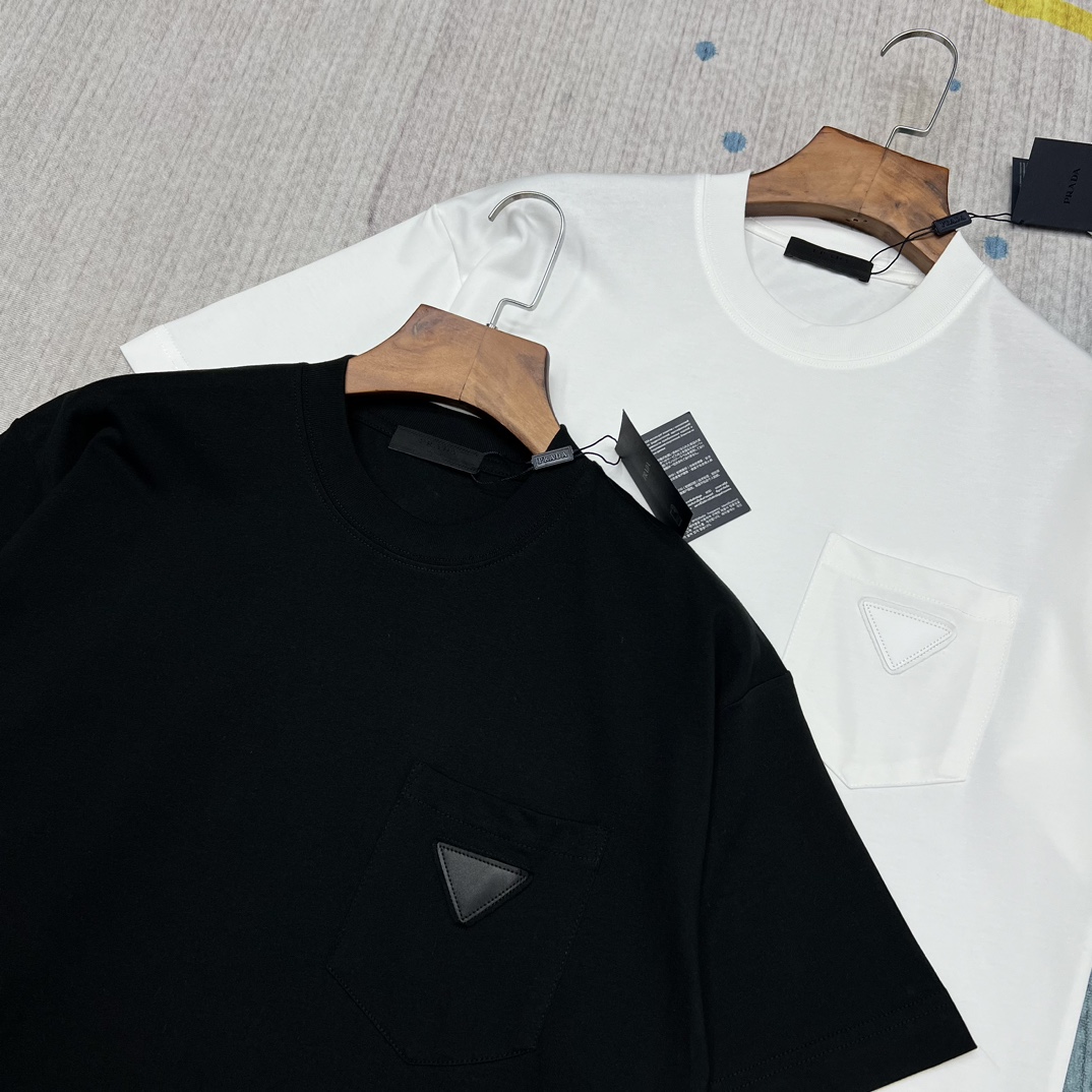 PRADA(プラダ) コピー 芸能人 春最新限定ポケット革タグ個性的タイプ半袖Tシャツ