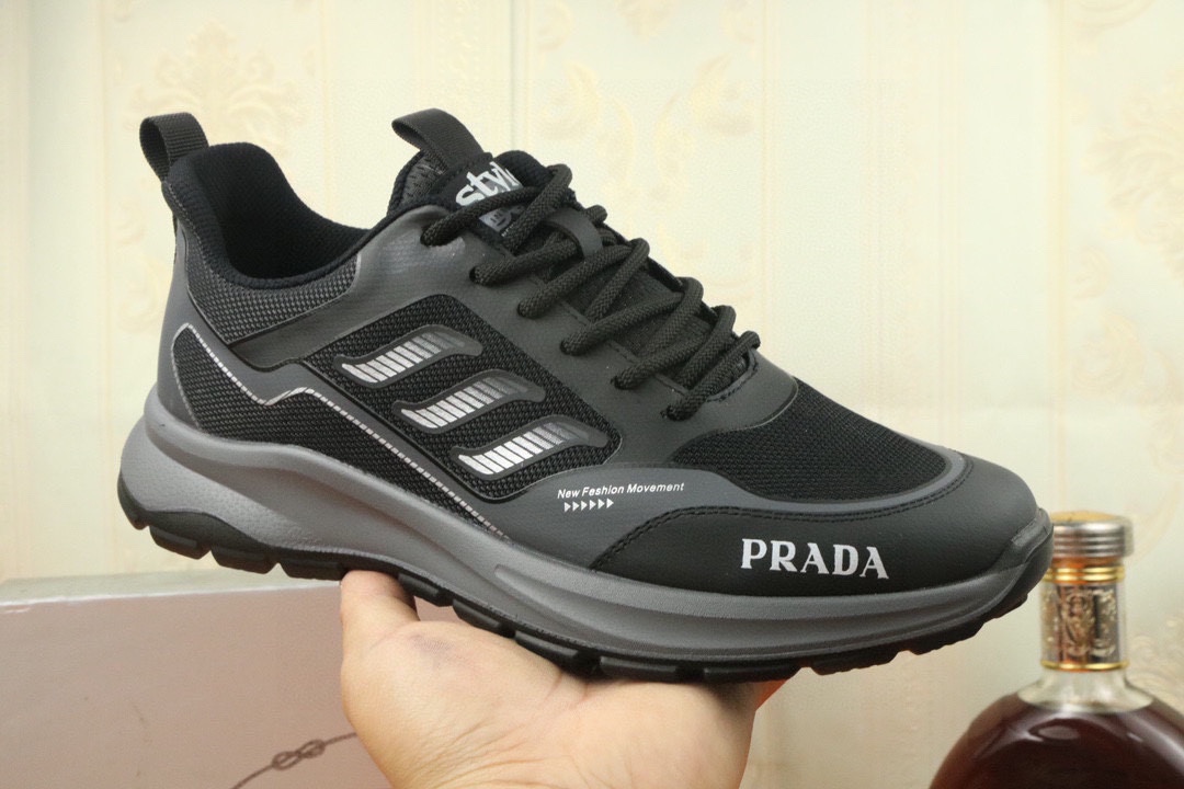 業界最高い品質 プラダ 偽物 輸入牛革通気性が良く滑り止め厚底カジュアルスニーカー