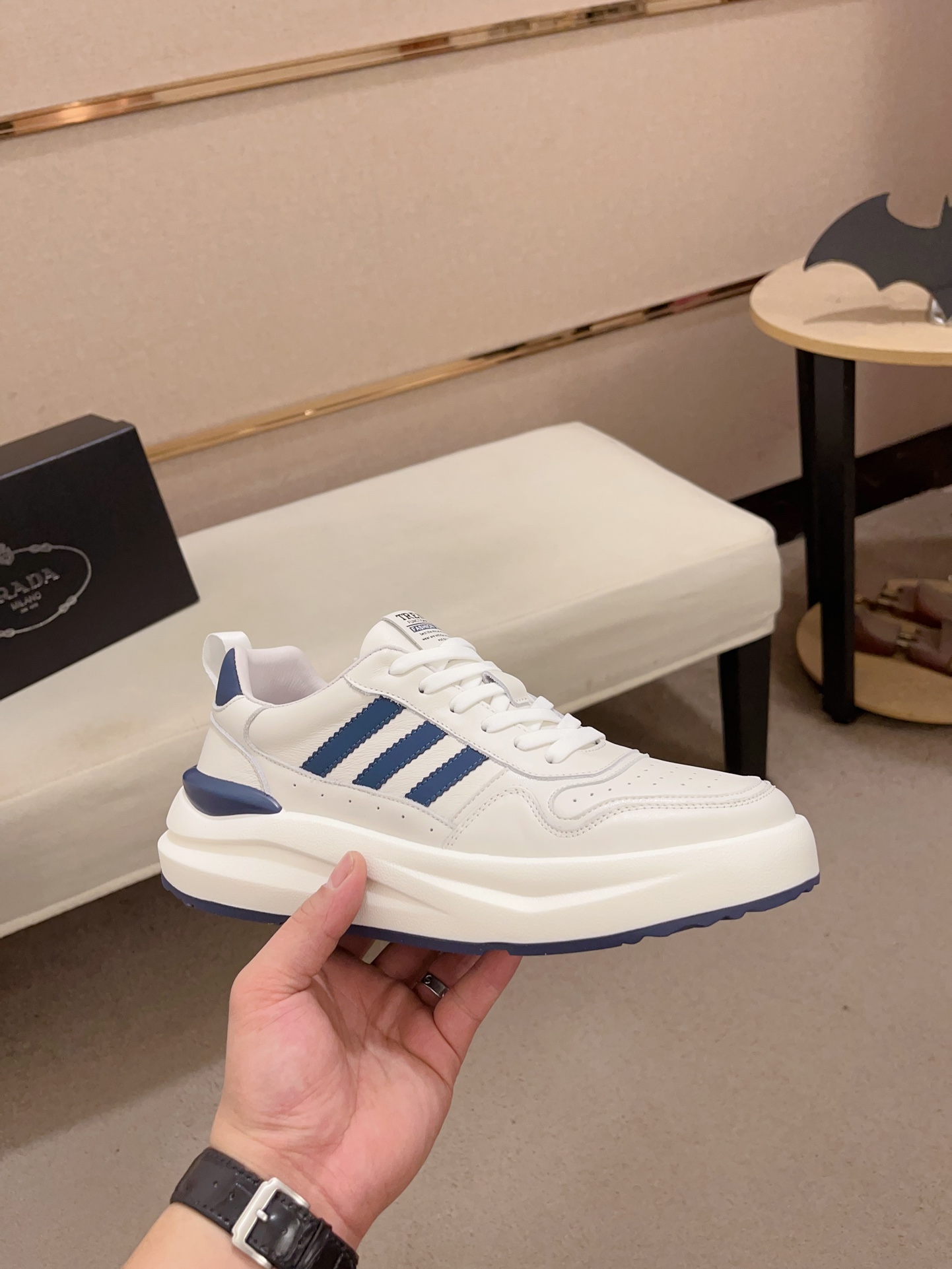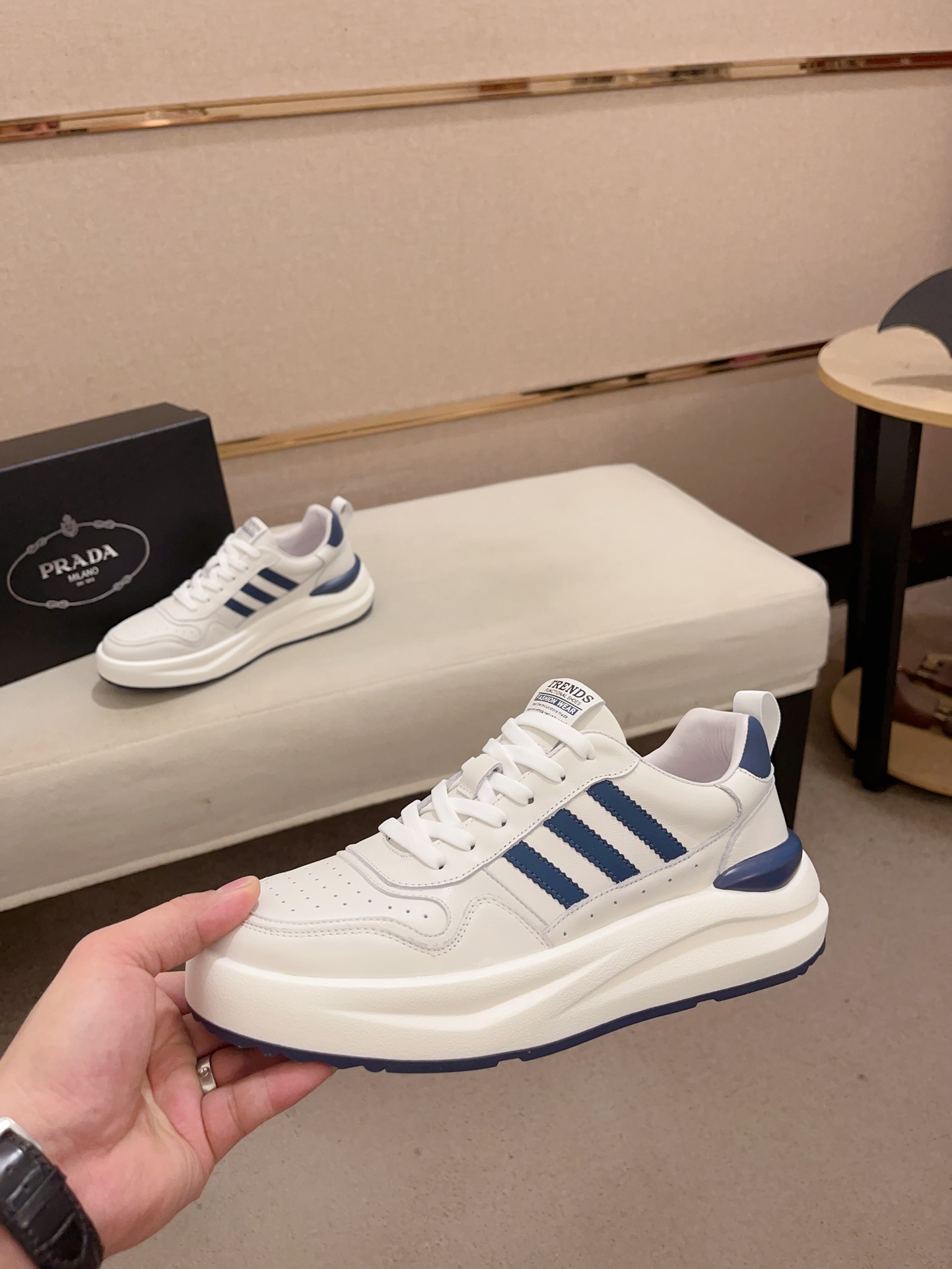 入手困難 プラダ n級品 人気バカ売れタイプ牛革通気性の良いメッシュ厚底カジュアルスニーカー