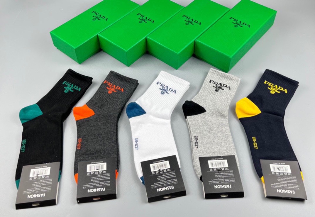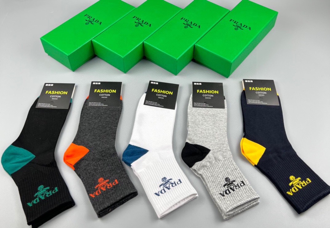 人気定番 薄手 吸汗 プラダ コピー 靴下 5足組
