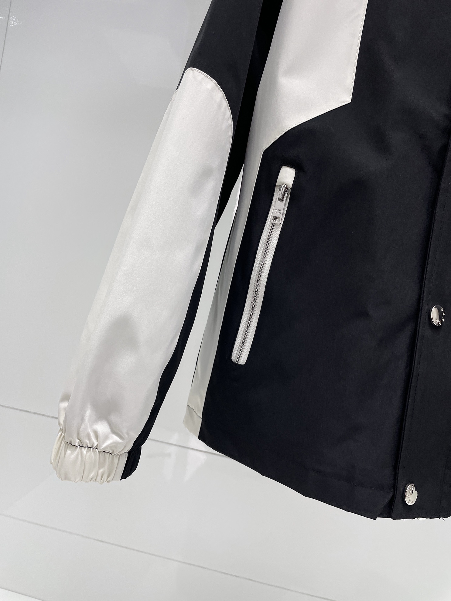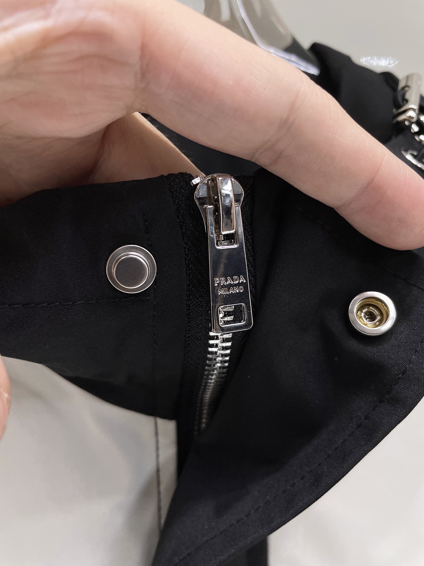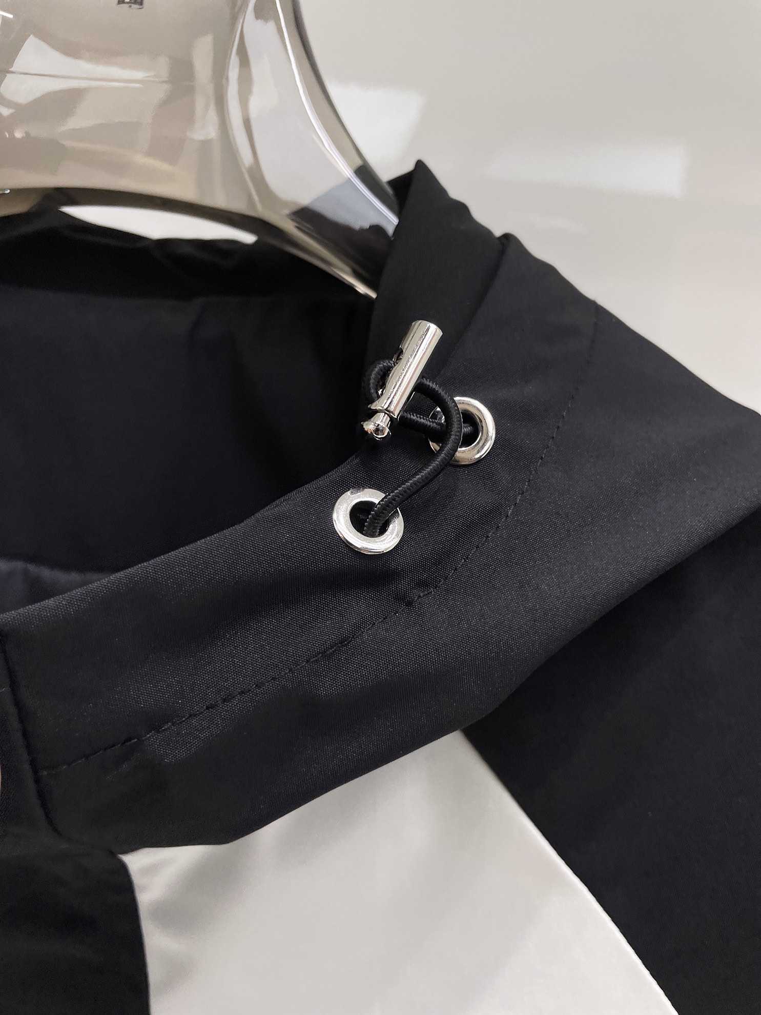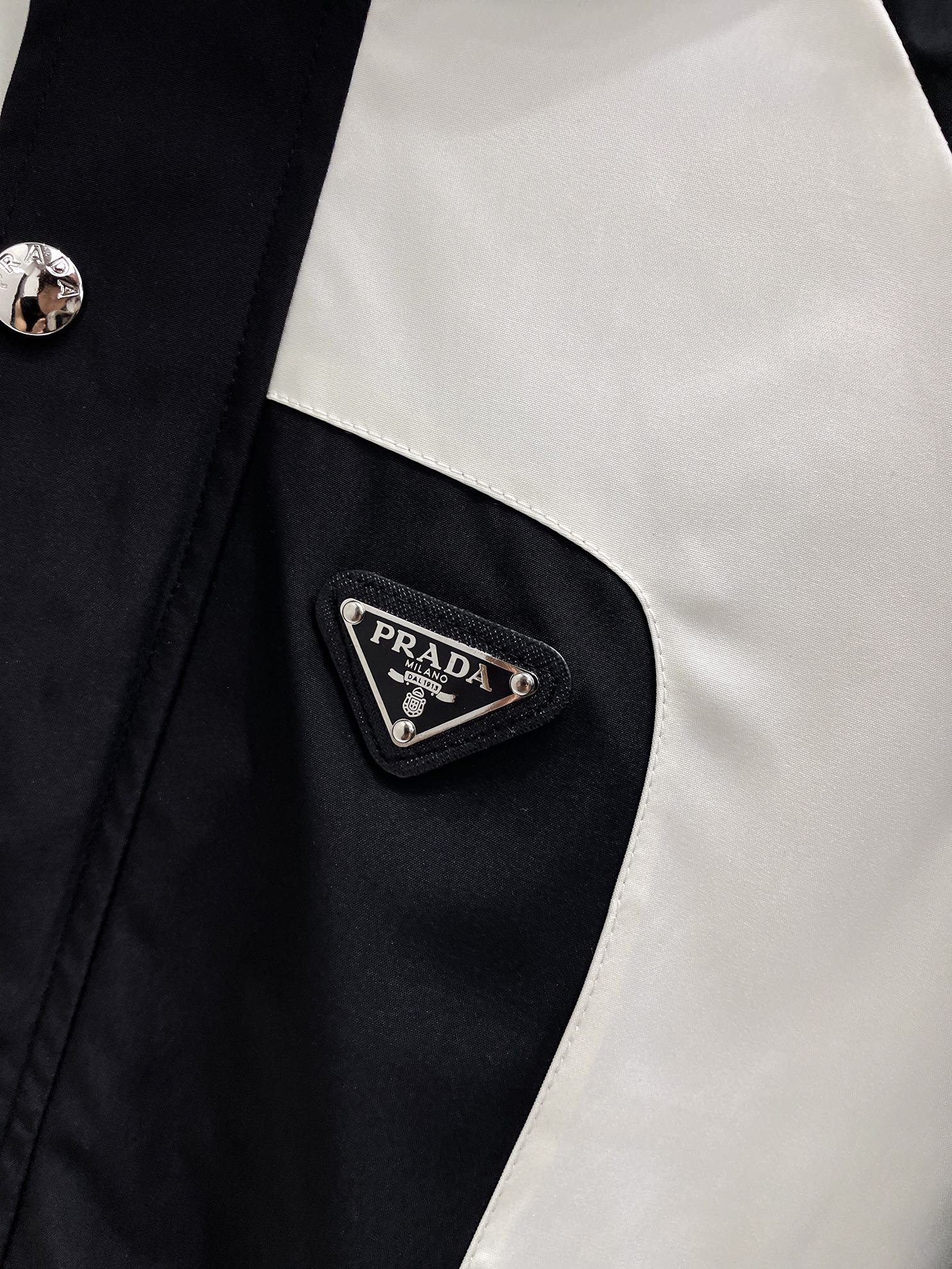 PRADA のブラック×ホワイト切替フーディジャケットは、洗練された配色と立体的なシルエットが魅力の新作モデル。軽量ナイロン素材を使用し、耐摩耗性と通気性に優れ、長時間の着用でも快適です。フロントのメタルパーツとロゴディテールが高級感を添え、カジュアルからモードスタイルまで幅広いコーディネートに対応します。