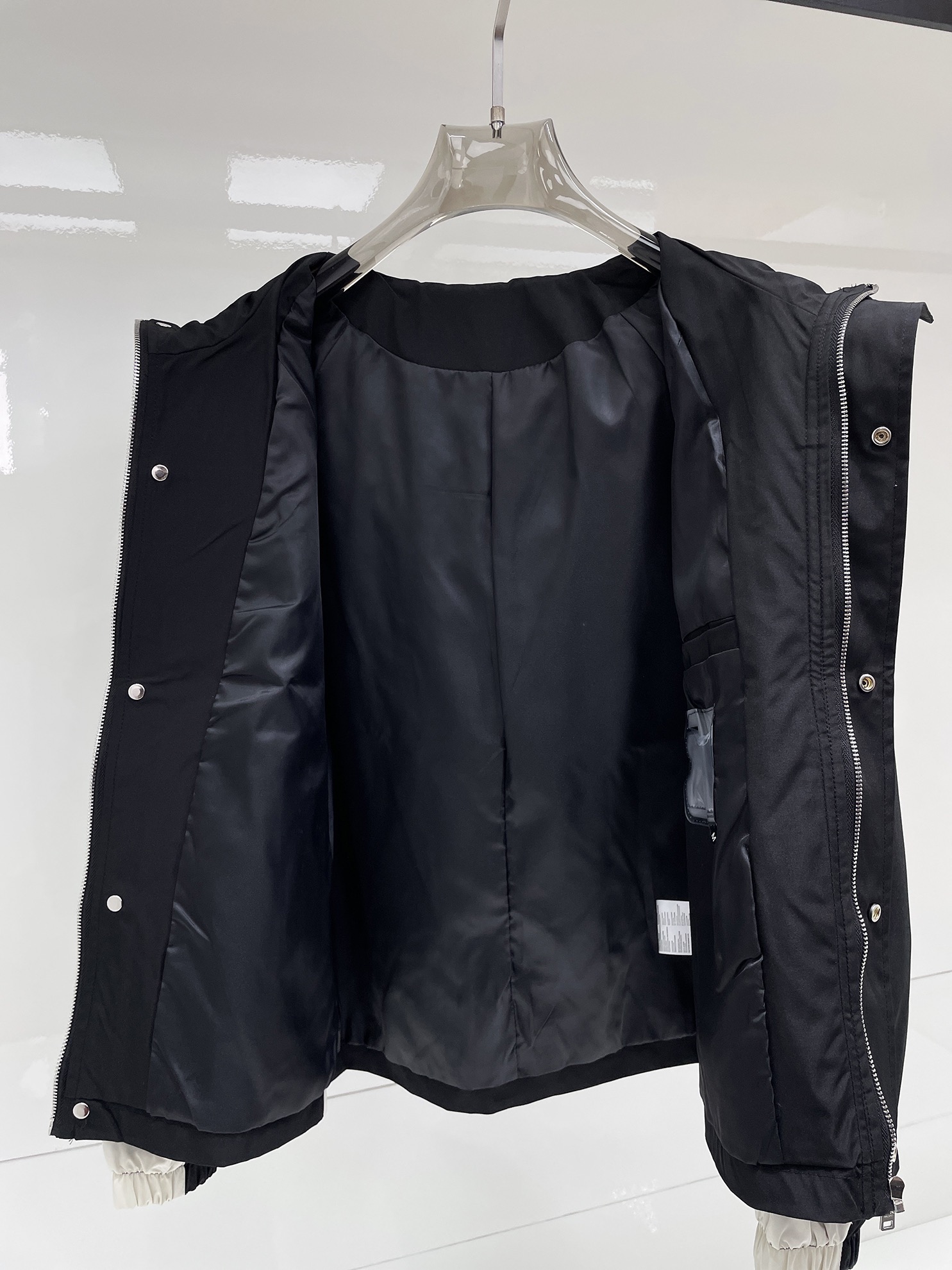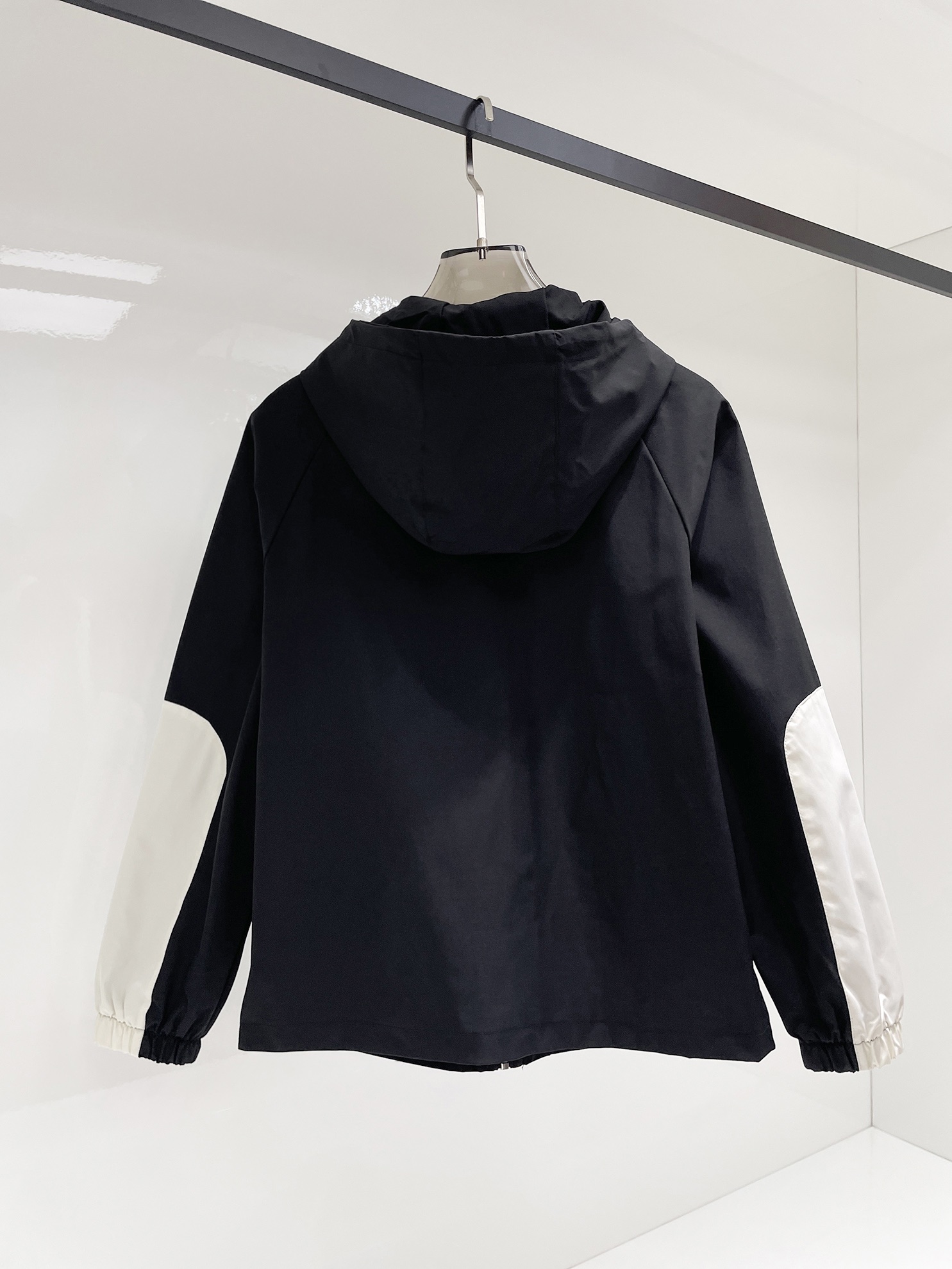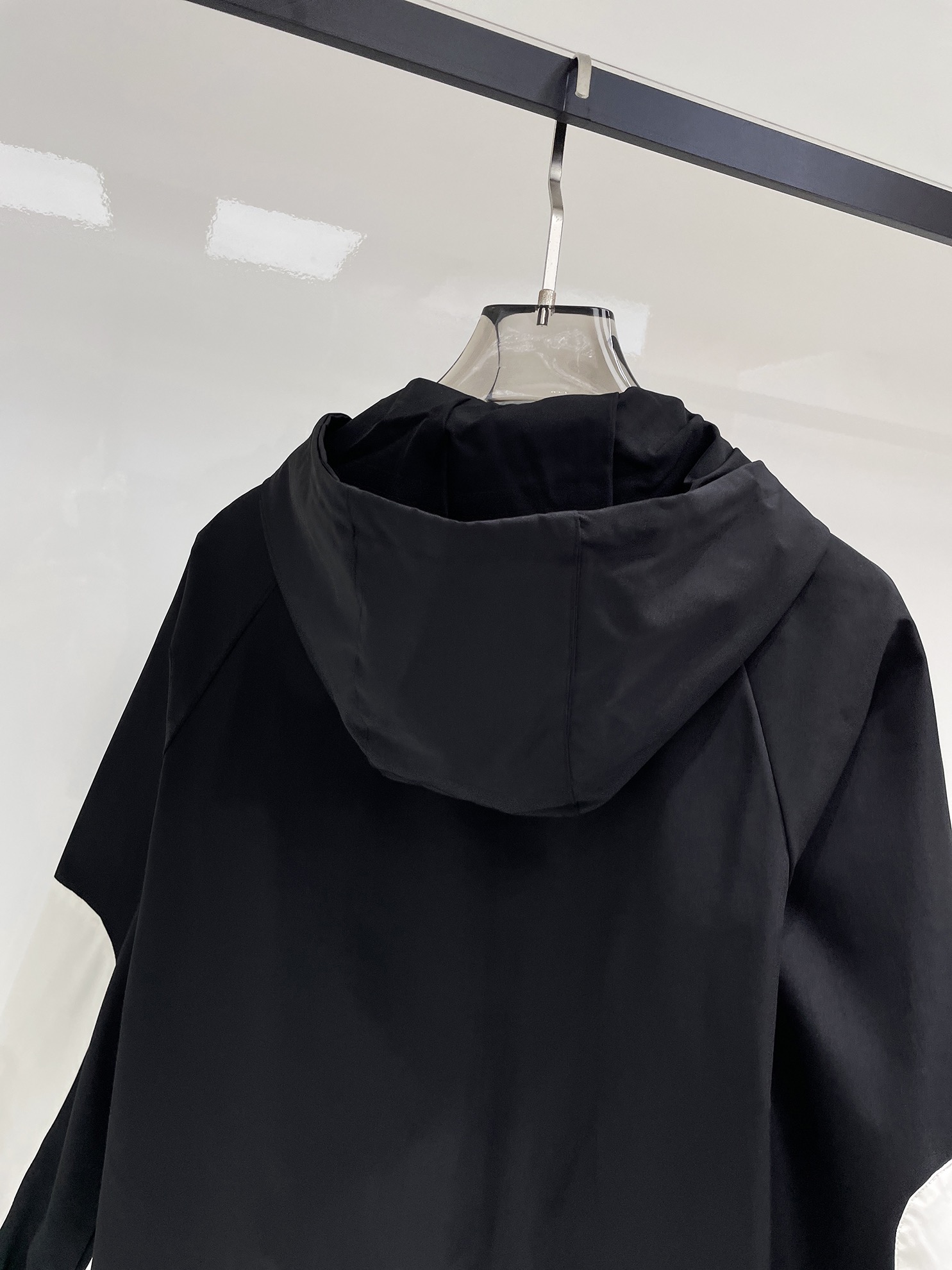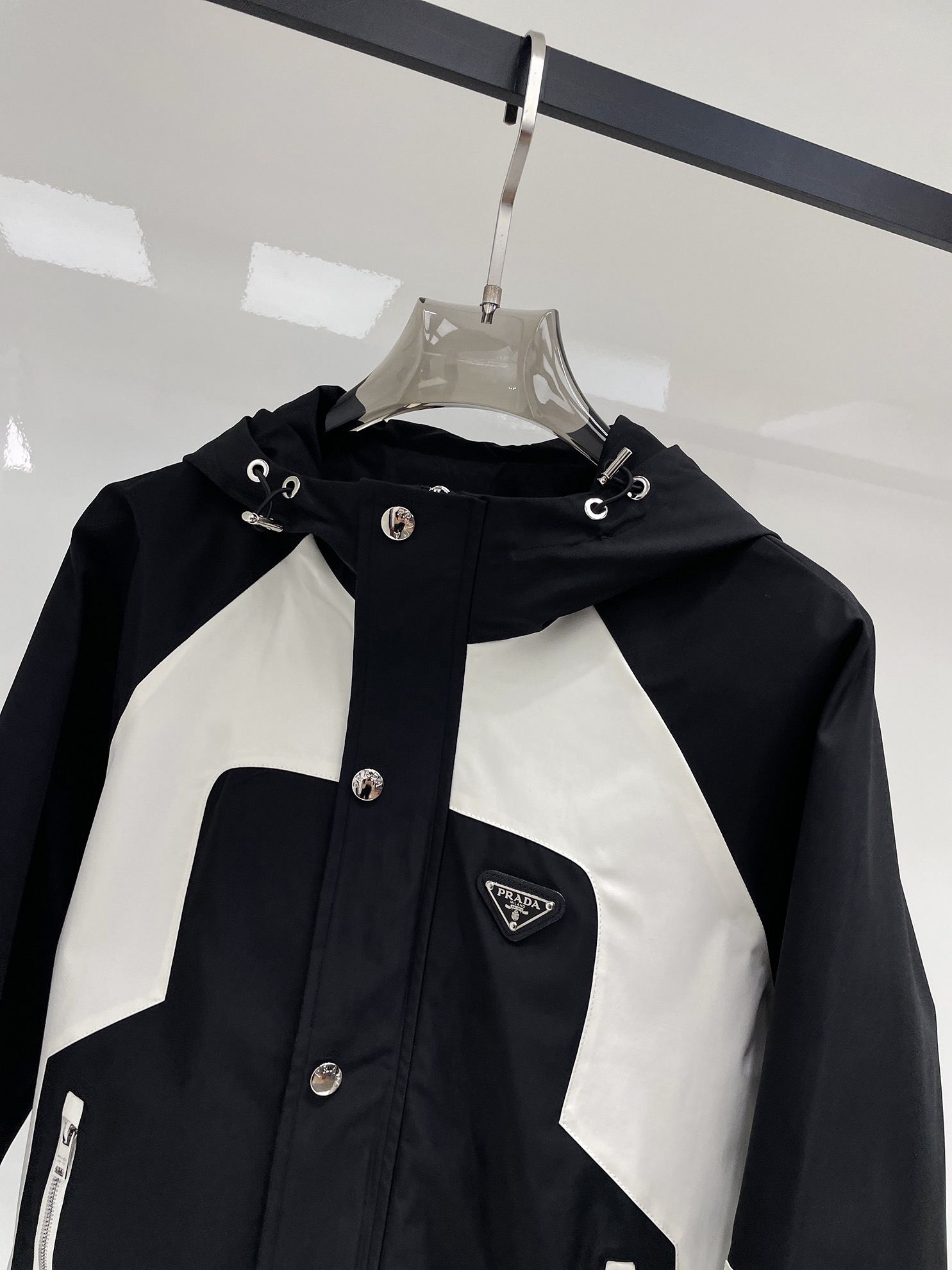 PRADA のブラック×ホワイト切替フーディジャケットは、洗練された配色と立体的なシルエットが魅力の新作モデル。軽量ナイロン素材を使用し、耐摩耗性と通気性に優れ、長時間の着用でも快適です。フロントのメタルパーツとロゴディテールが高級感を添え、カジュアルからモードスタイルまで幅広いコーディネートに対応します。
