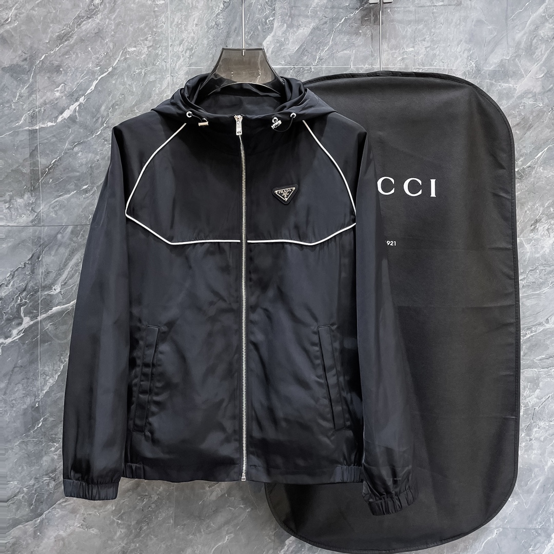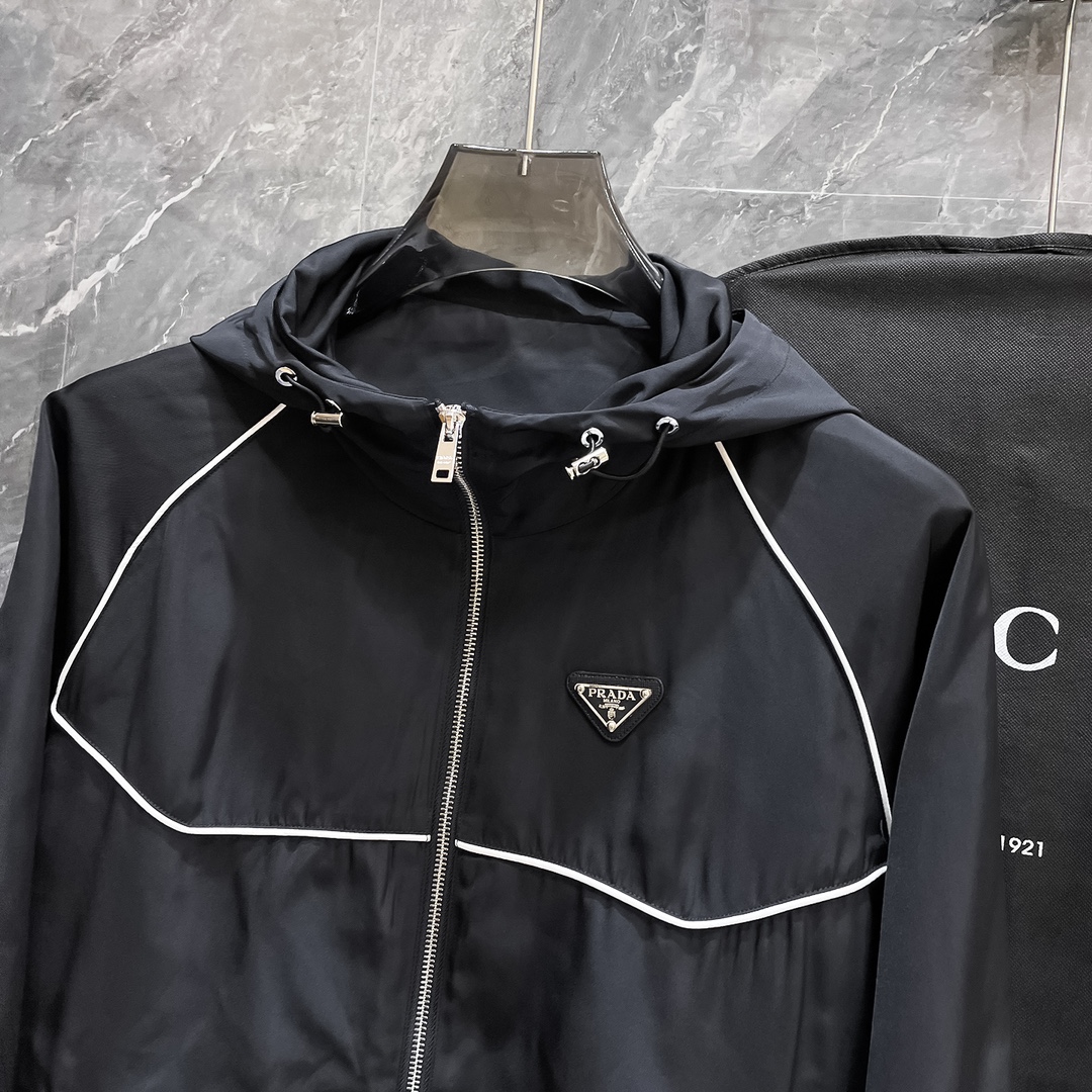 プラダ スーパーコピー 優良サイト ナイロンフーディジャケット ブラック パイピング仕様