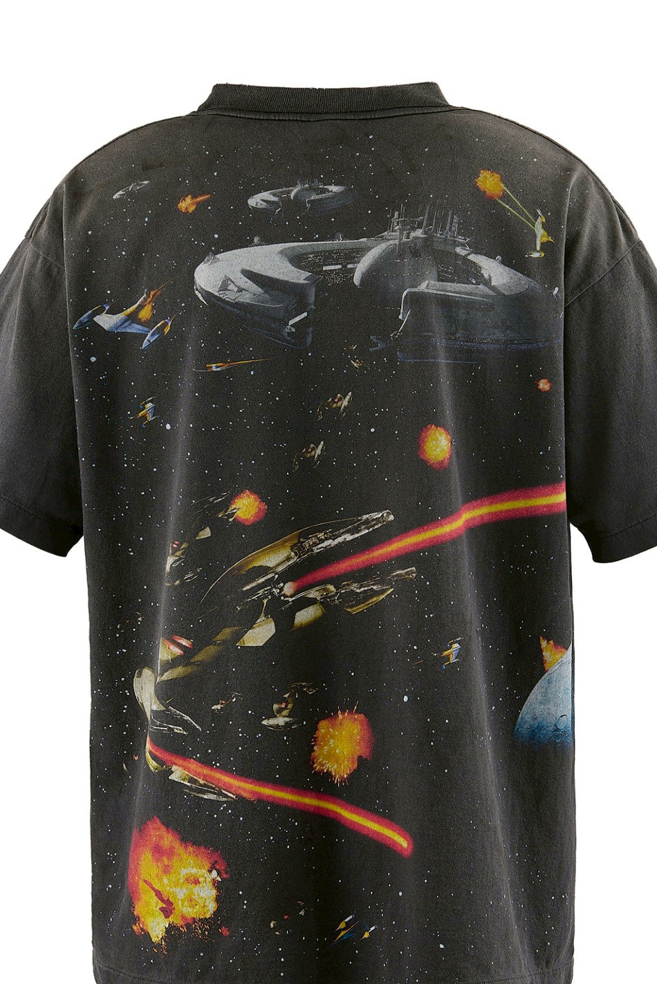 セントマイケル(Saint Michael)の芸能人偽物 Tシャツは、スターウォーズ「エピソード1/ファントム・メナス」をモチーフにした迫力の宇宙戦闘グラフィックが特徴。漆黒の宇宙に映える戦闘機や爆発の描写は、ヴィンテージ感ある加工と相まって存在感を放ちます。ストリートファッションとの相性も抜群で、デニムやワイドパンツと合わせて着こなせば一枚で主役級のスタイリングに。柔らかいコットン素材を使用し、デイリーでも快適な着心地を実現。映画ファンからセレブまで愛されるデザインで、口コミでも高評価を獲得している2025新作です。
