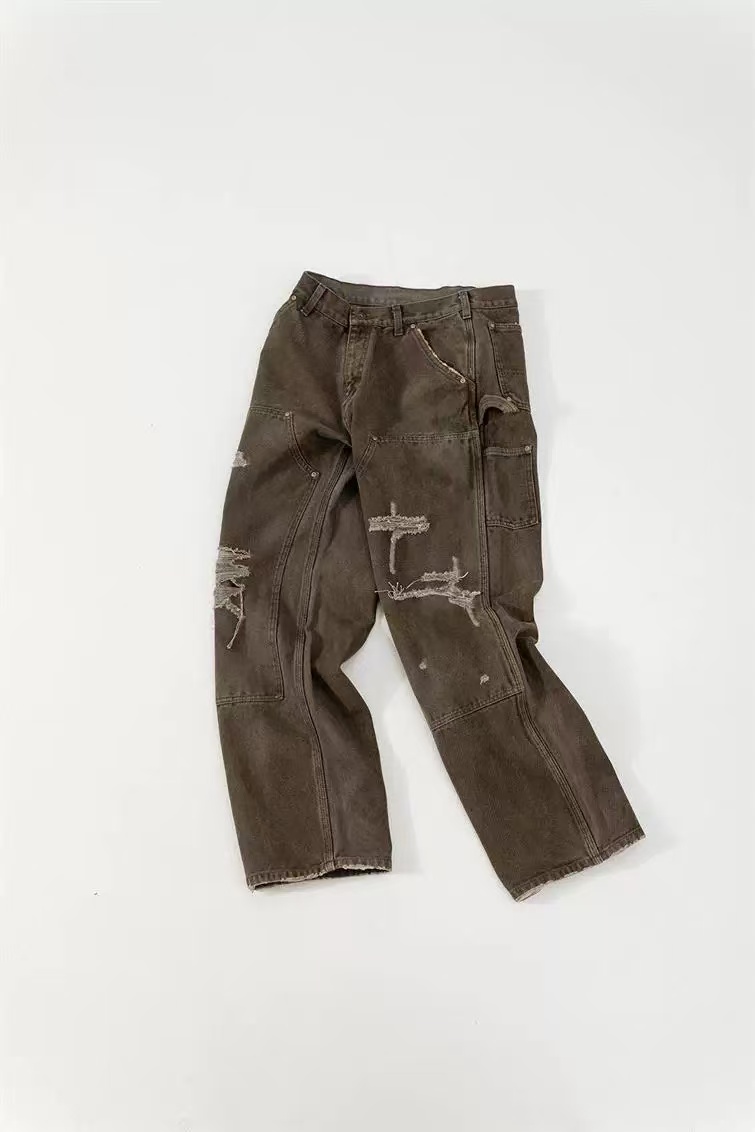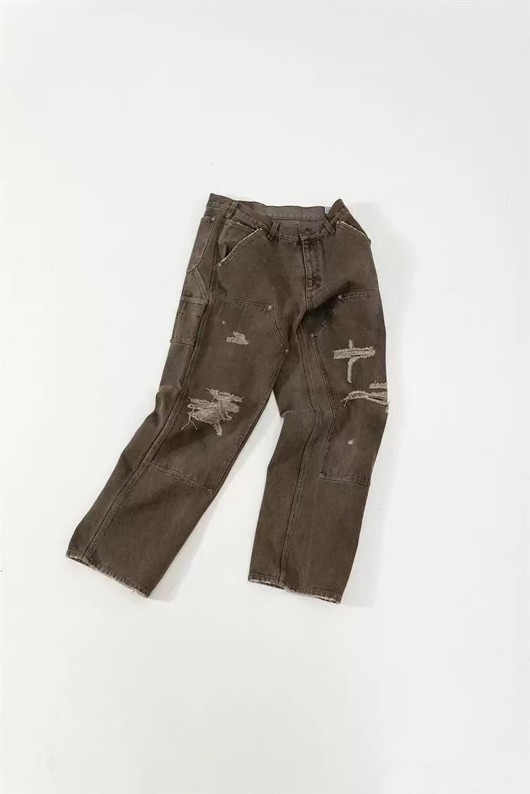 サンマイケル ブランド コピー ダメージデニムパンツ ヴィンテージ加工 ワイドストレート