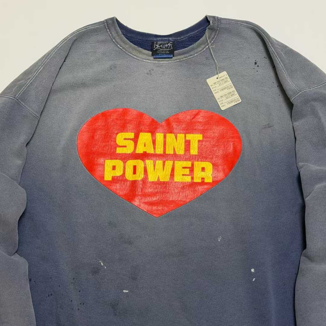 セントマイケル(Saint Michael)らしいアート性とメッセージ性をシンプルに表現した SAINT POWER スウェット。フロントに配置された赤いハートロゴは、均一ではないプリント表情をあえて残すことで、長年着込んだようなリアルなヴィンテージ感を演出しています。ボディ全体には自然な色落ち加工が施され、退廃的で奥行きのある雰囲気をプラス。適度な厚みのスウェット生地は着心地も良く、秋冬から春先まで長く活躍します。デニムやワークパンツと合わせるだけで、セントマイケル特有の世界観を簡単に取り入れられる仕上がりとなっています。