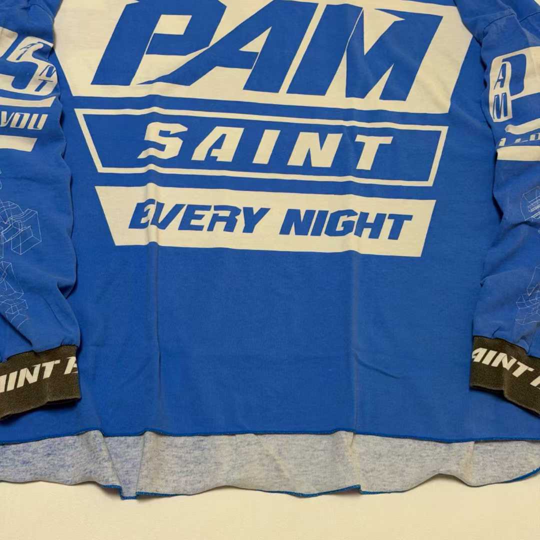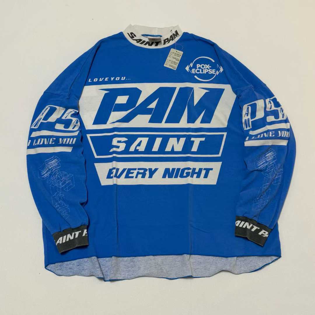本款為セントマイケルを代表するグラフィック要素を全面に落とし込んだロングスリーブTシャツです。フロントには存在感のあるPAMロゴとメッセージプリント、バックスタイルにも大胆なレタリングを配置し、ストリート感の強い視覺設計が魅力。スーパーコピー等級ならではの高再現度により、版型、配色細節、印刷位置まで忠実に製作されています。