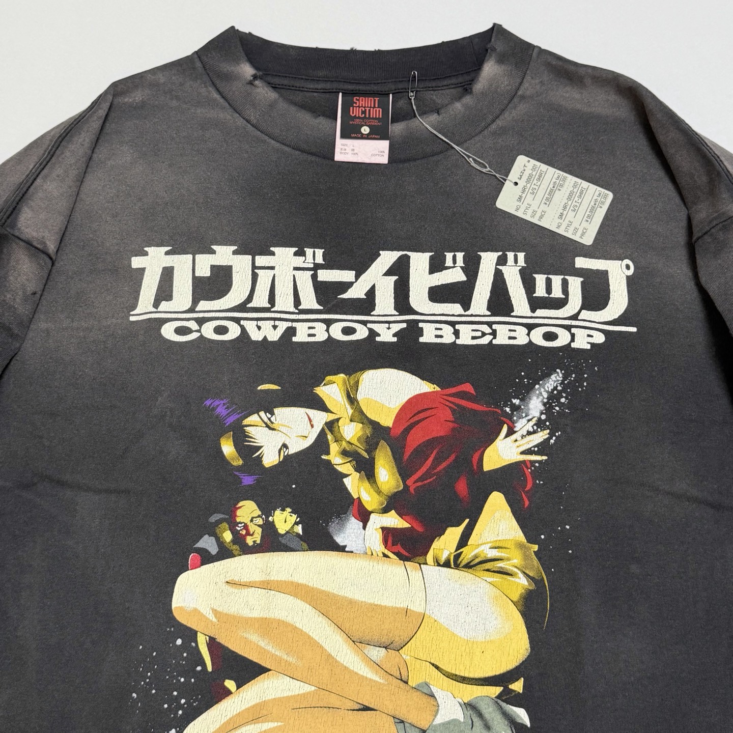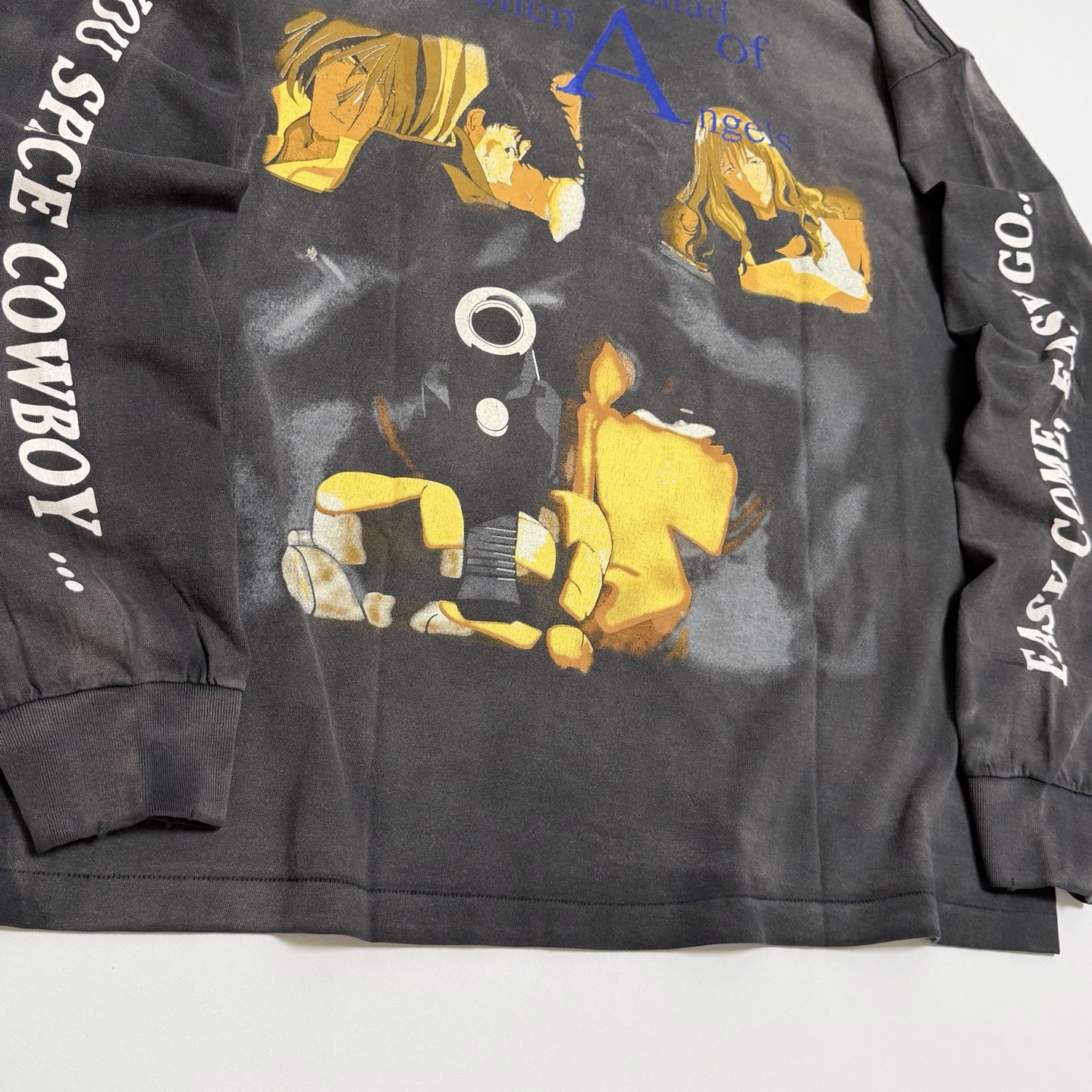 フロントには印象的なキャラクターグラフィック、バックには複数のシーンを組み合わせたデザインを配置したロングTシャツ。文字配置やプリントのかすれ具合まで細かく再現され、見分けがつかない完成度を実現しています。ややルーズなシルエットで、レイヤードにも使いやすい設計。袖に入ったメッセージプリントが全体のアクセントとなり、単体でも存在感のある仕上がりです。通気性に配慮した素材感で、季節を問わず着用可能。アニメとストリートを融合したセントマイケルらしい一着です。