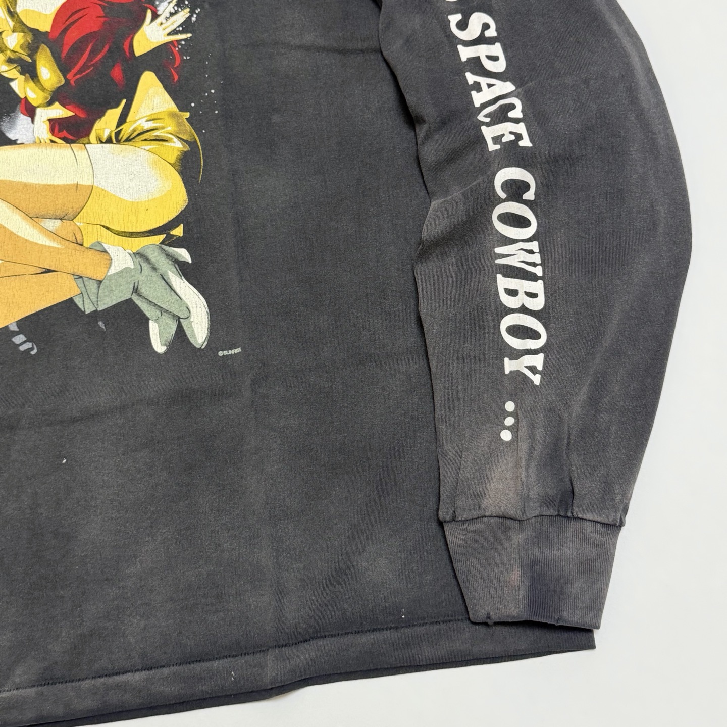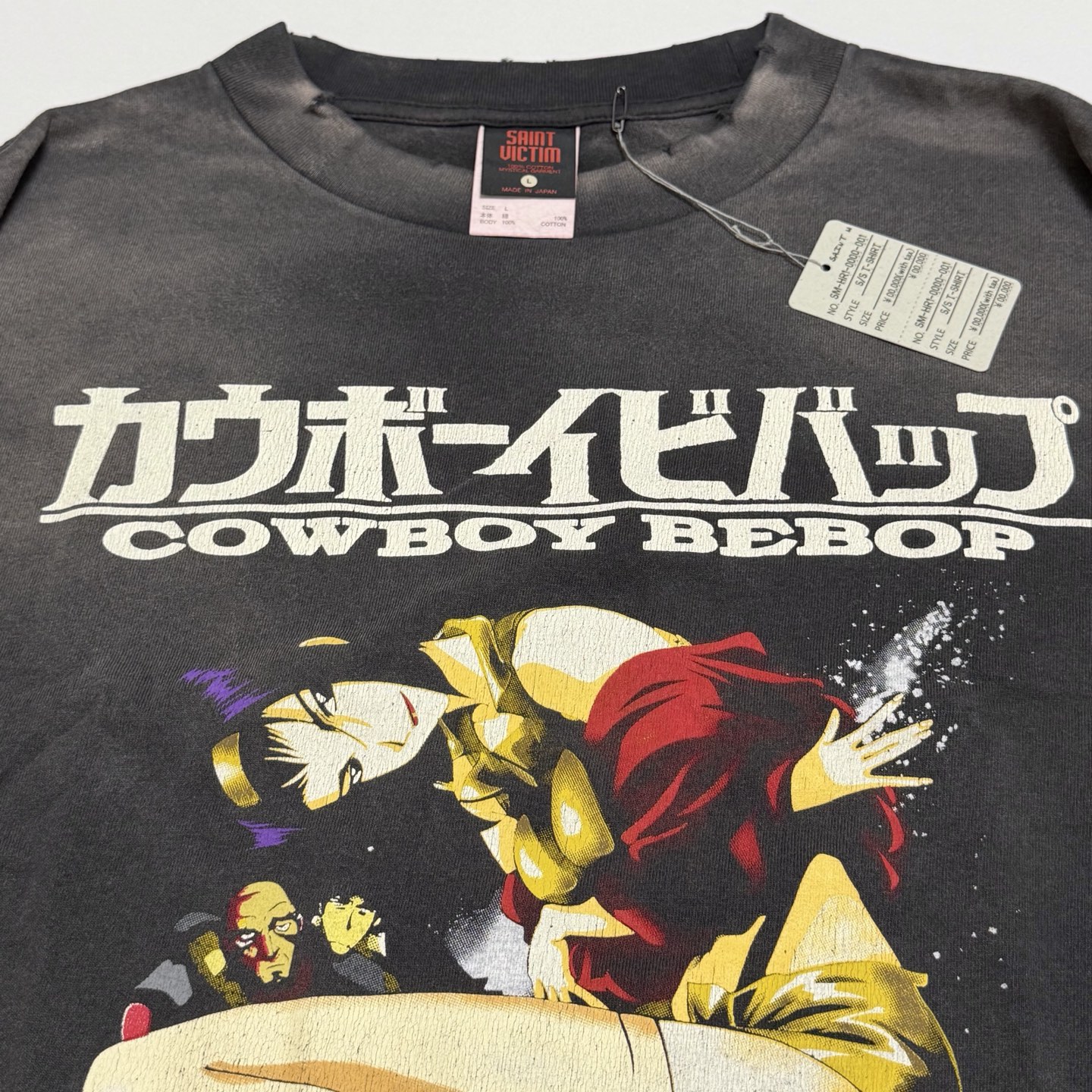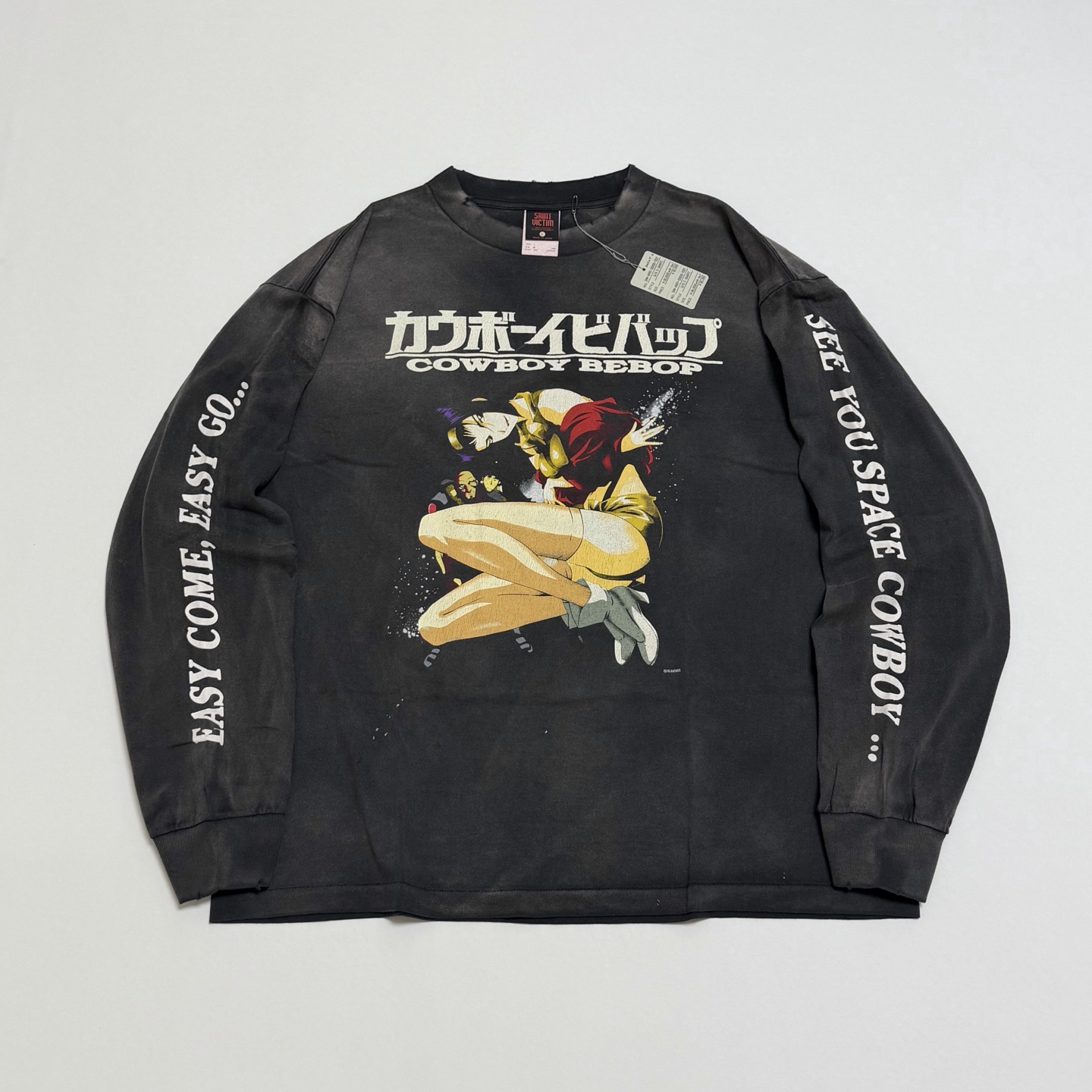 フロントには印象的なキャラクターグラフィック、バックには複数のシーンを組み合わせたデザインを配置したロングTシャツ。文字配置やプリントのかすれ具合まで細かく再現され、見分けがつかない完成度を実現しています。ややルーズなシルエットで、レイヤードにも使いやすい設計。袖に入ったメッセージプリントが全体のアクセントとなり、単体でも存在感のある仕上がりです。通気性に配慮した素材感で、季節を問わず着用可能。アニメとストリートを融合したセントマイケルらしい一着です。