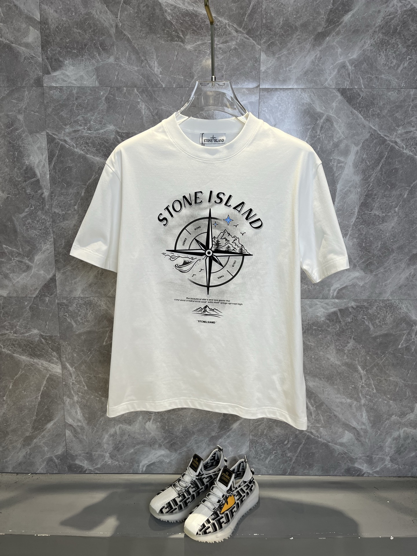 STONE ISLAND n級 大LOGO白色半袖Tシャツ 機能性 夏服人気
