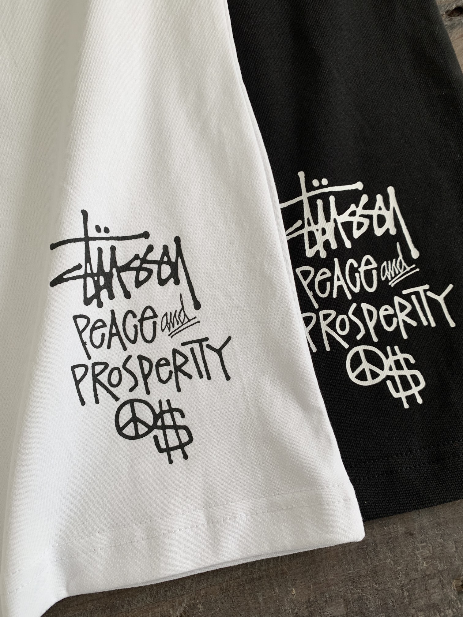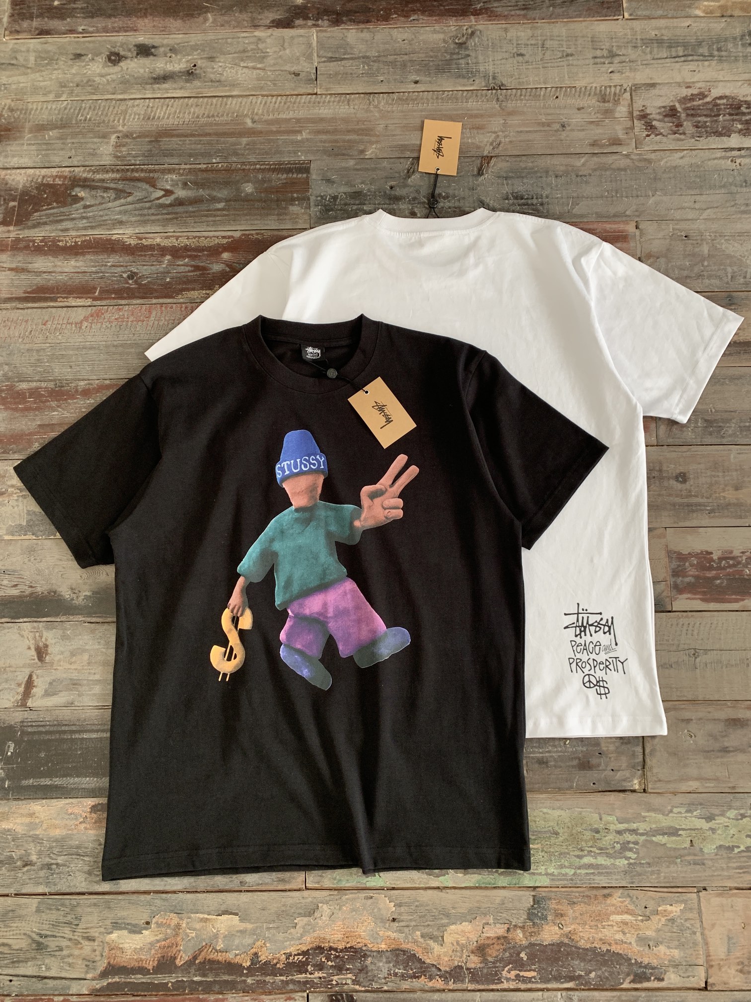 STUSSY(ステューシー)新作 コピー Peace Prosperity Tee人形背面標語半袖Tシャツ