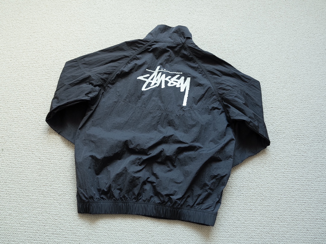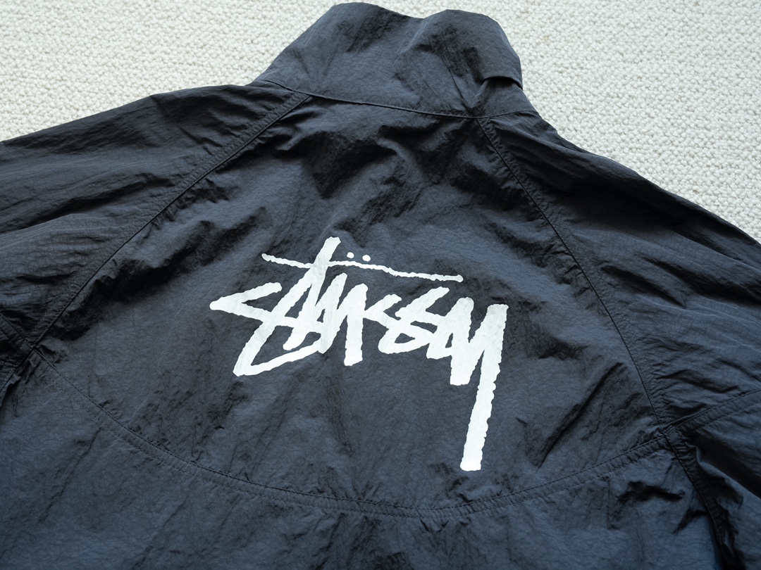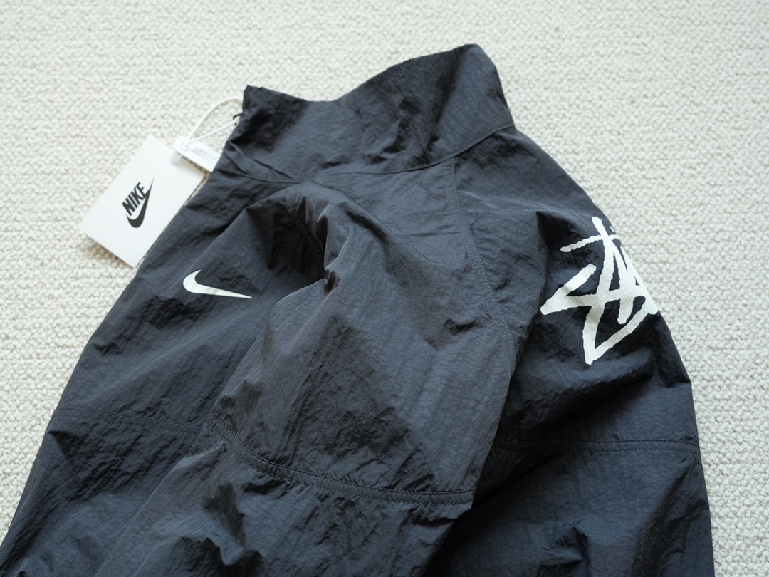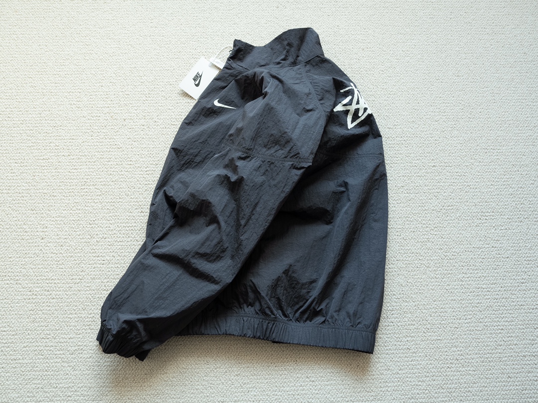 ステューシー 芸能人偽物 ナイキ コラボ ウィンドブレーカーは、ブラックカラーにホワイトロゴを配したシンプルで洗練されたデザイン。軽量ながらも風をしっかり防ぐナイロン素材を採用し、アクティブな日常にぴったり。背面にはステューシーの象徴的な筆記体ロゴ、胸元にはナイキのスウッシュが施され、ストリートカルチャーの象徴的なスタイルを完成させています。芸能人の着用でも話題のモデルで、動きやすさとデザイン性を両立した逸品。