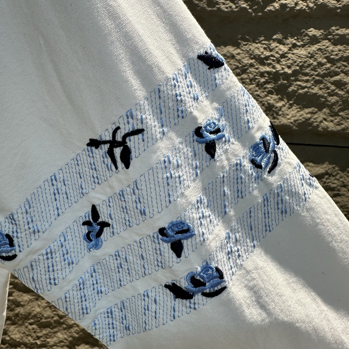 トムブラウン n級 ホワイトシャツ フローラル刺繍&ブランドタグ付きクラシックモデル