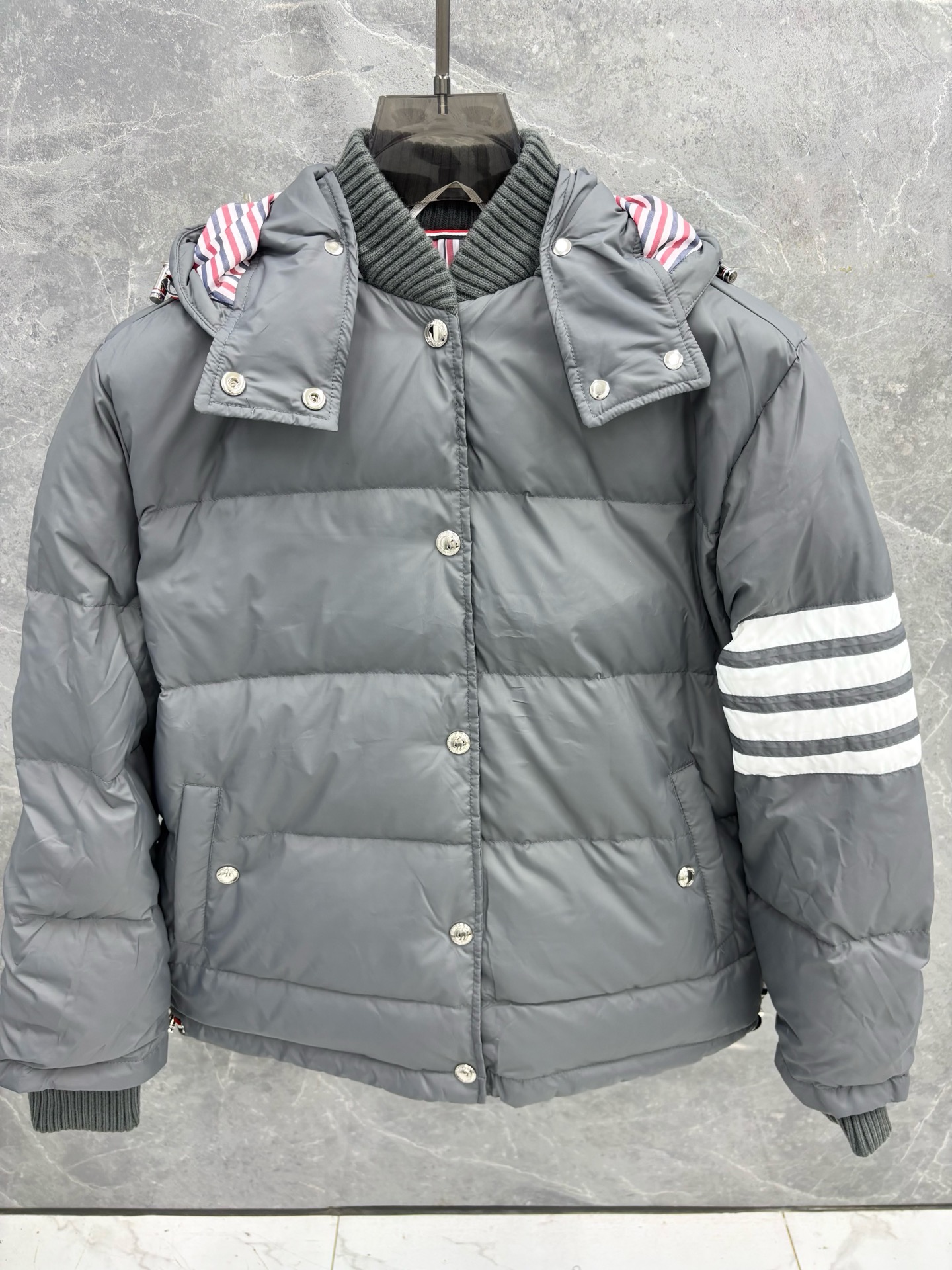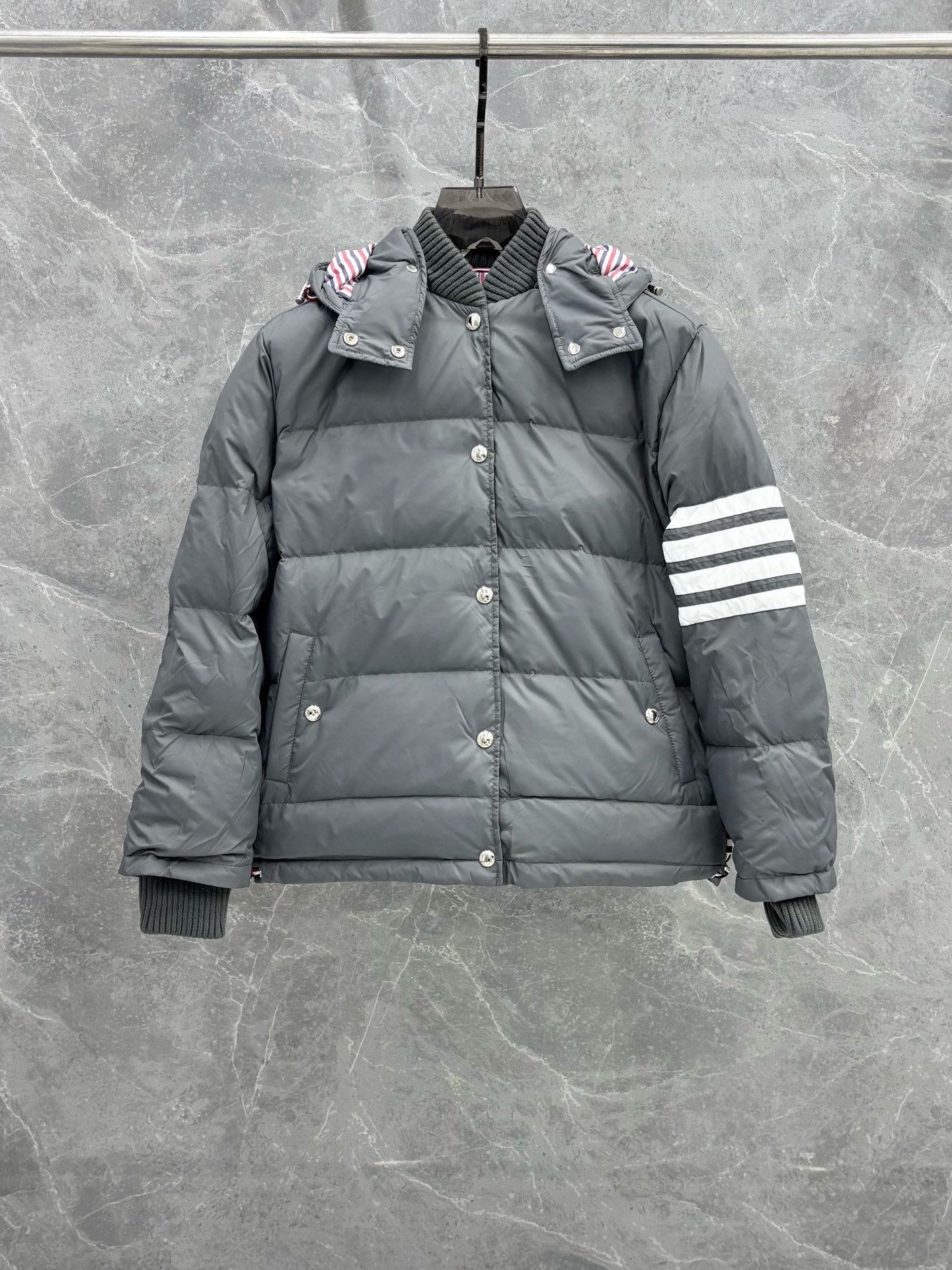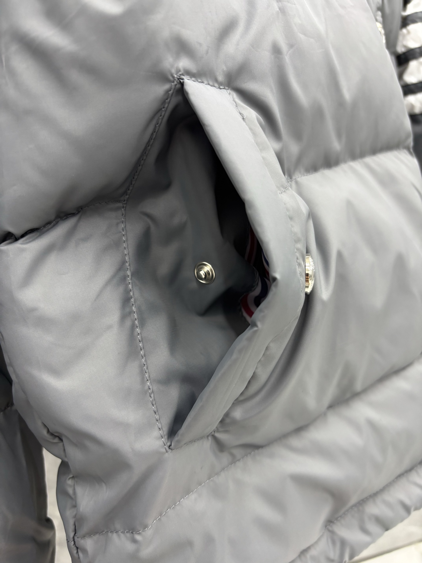 トムブラウン 芸能人偽物 4BAR グレーダウンジャケット 落ち着いた色味が魅力の冬人気アウター