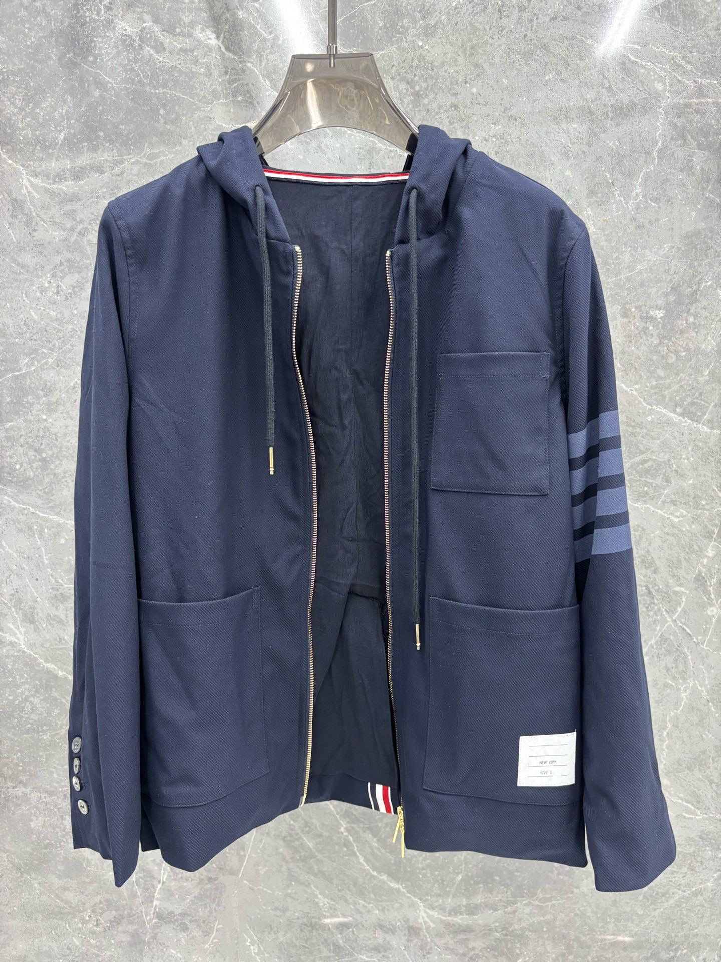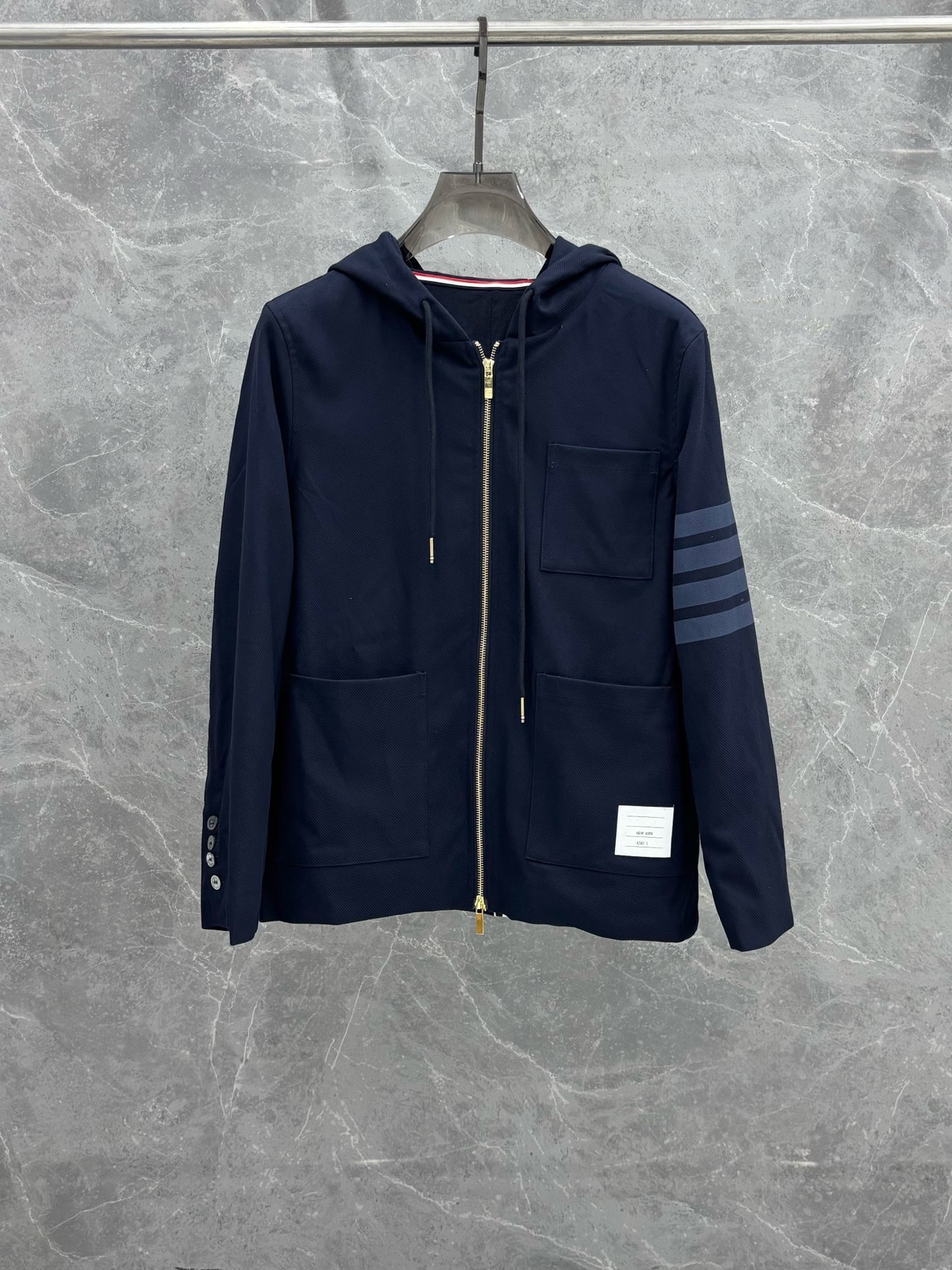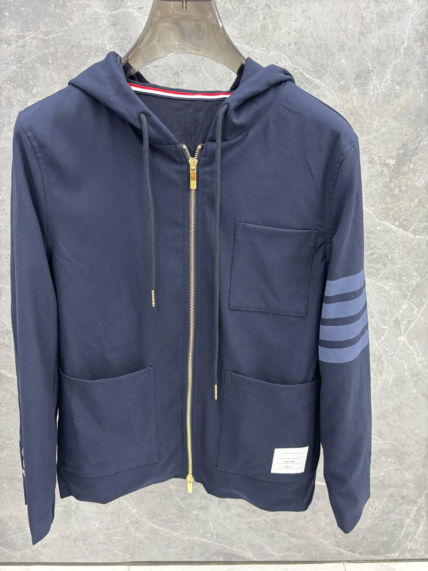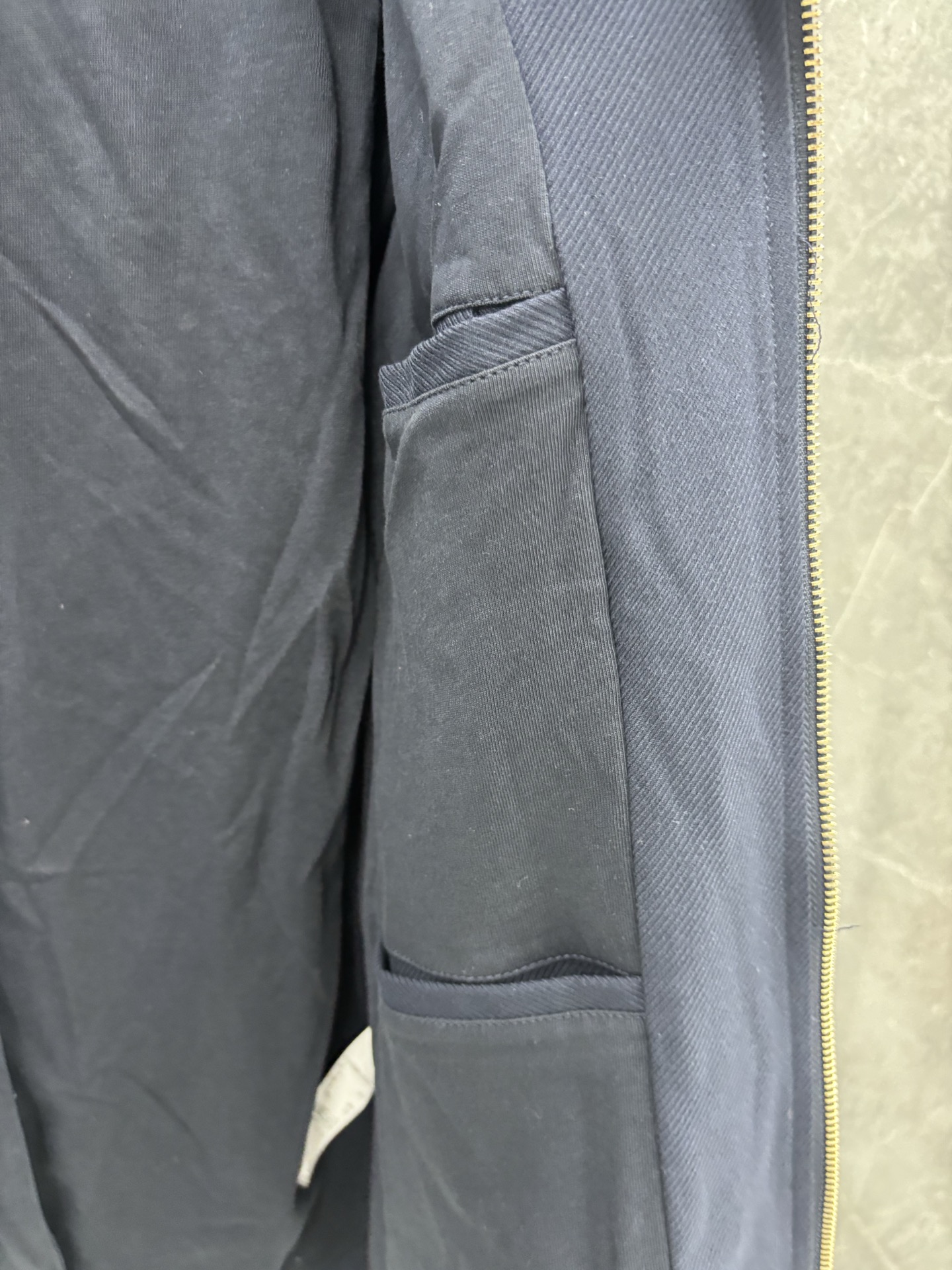 ネイビーを基調とした4BARジップパーカーは、シンプルでありながら気品のある佇まいが魅力。袖の4本ラインは控えめながらしっかりと存在感があり、ブランドらしさを自然に引き立てます。フロントのゴールドジップは滑らかで高級感があり、フードの立ちや胸ポケットの配置も実用的。柔らかな素材は動きやすく、季節の変わり目にも快適に着用できます。スーパーコピー 優良サイト品質として細部の縫製、ポケットのバランス、袖リブの仕上げまで丁寧に作られており、カジュアルにも上品なスタイルにも合わせやすい万能な一着。日常的に使える高再現度のパーカーとして人気の高いモデルです。