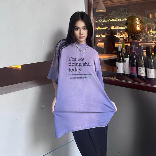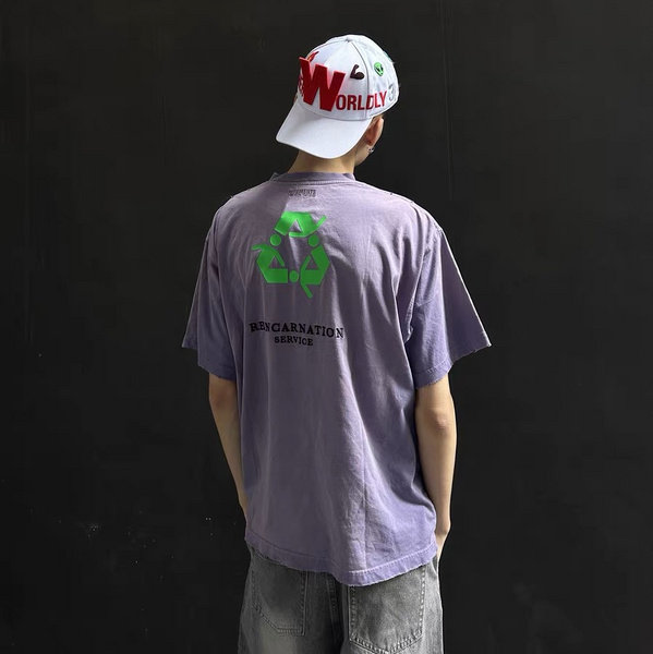 Vetements(ヴェトモン) 芸能人 偽物 トレンドプリントウォッシュ加工半袖Tシャツ