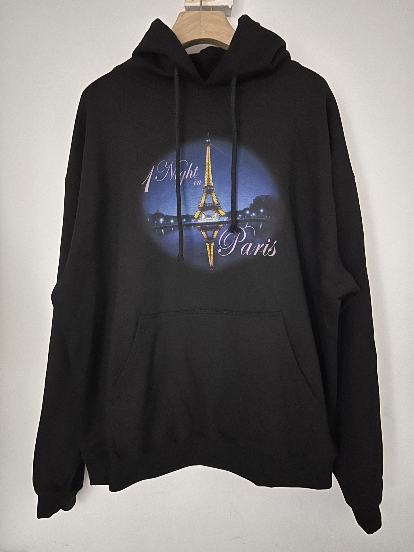 エッフェル塔を中心とした幻想的な夜景がプリントされた、印象的なVetements“1 Night in Paris”フーディー。鮮明で奥行きある発色は着るだけでコーデの主役になるほど存在感抜群。ブラックボディとのコントラストが美しく、都会的でロマンティックな雰囲気を引き立てます。スーパー コピー レベルの仕上がりを求める方にも人気で、グラフィックの細部まで繊細に再現。ゆったりとしたシルエットで男女問わず着用可能、デニムやスラックスと合わせれば大人のストリートスタイルが完成します。デイリーでも旅行先でも活躍する万能な一着です。